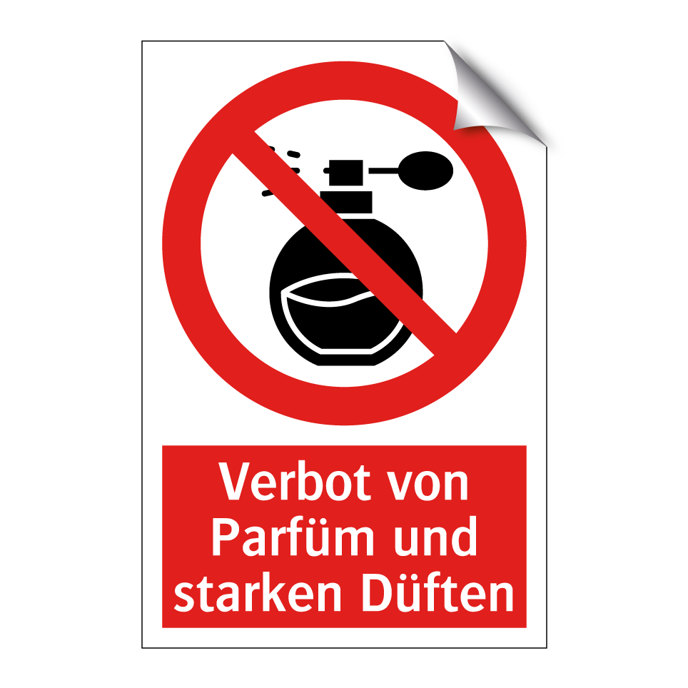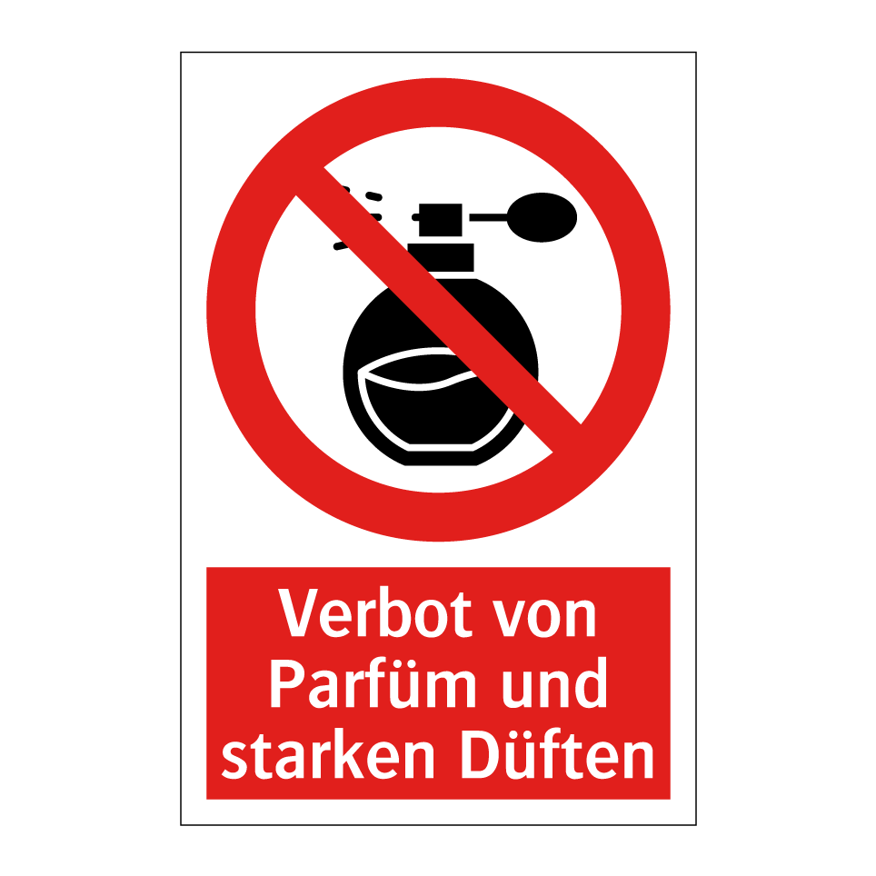 Verbotsschild mit dem Text Verbot von Parfüm und starken Düften