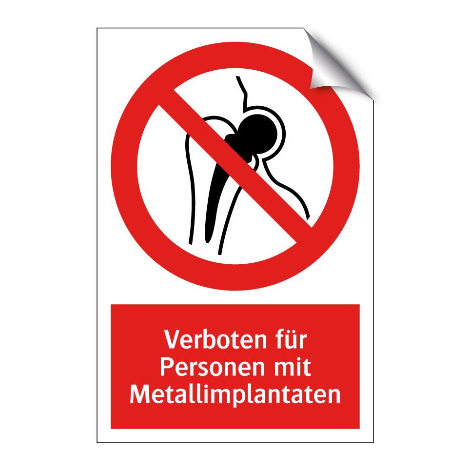 Verbotsschild mit dem Text Verboten für Personen mit Metallimplantaten