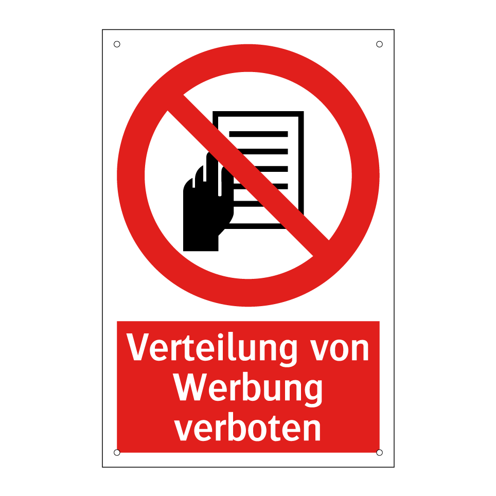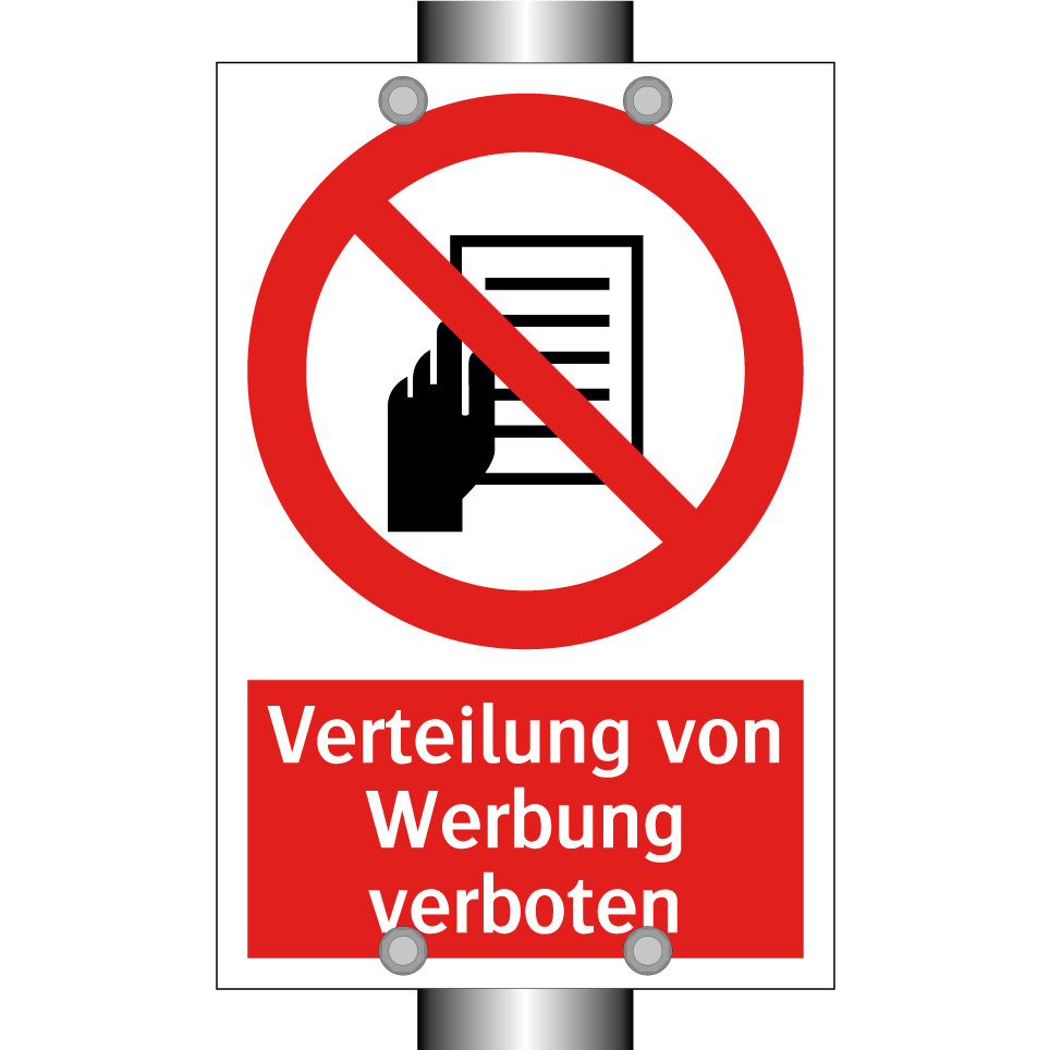 Verbotsschild mit dem Text Verteilung von Werbung verboten