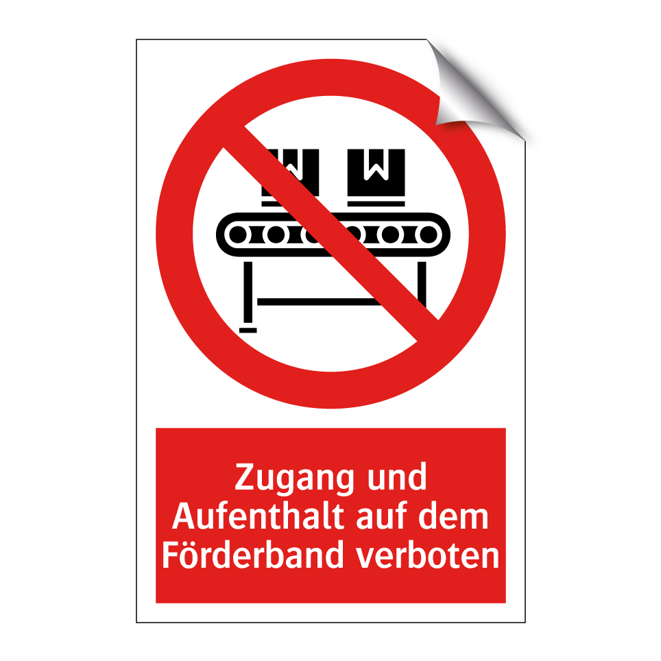 Verbotsschild mit dem Text Zugang und Aufenthalt auf dem Förderband verboten