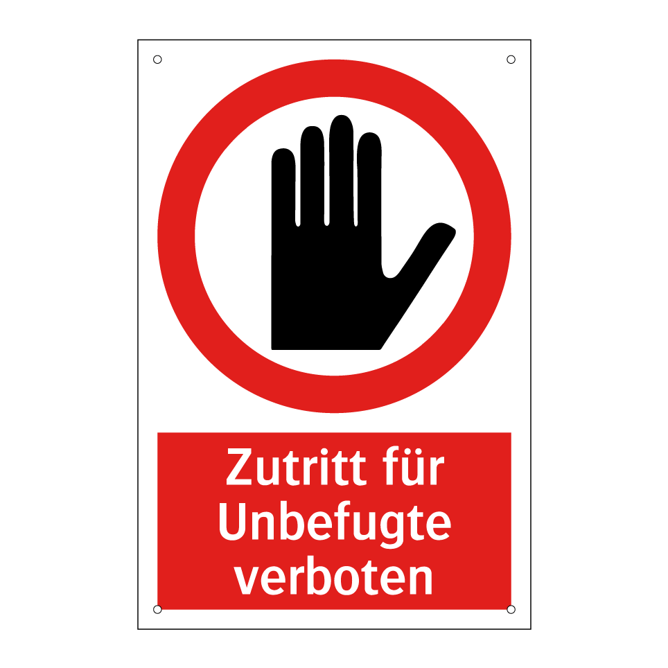 Verbotsschild mit dem Text Zutritt für Unbefugte verboten