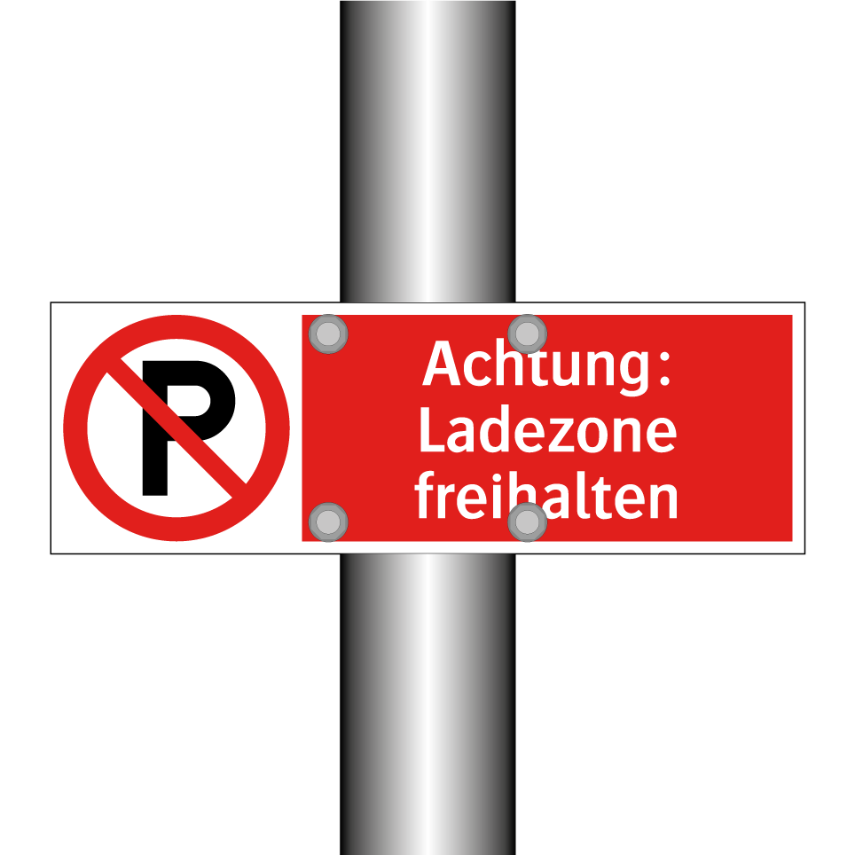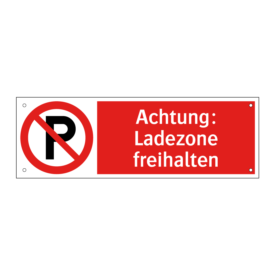 Verbotsschild mit dem Text Achtung: Ladezone freihalten