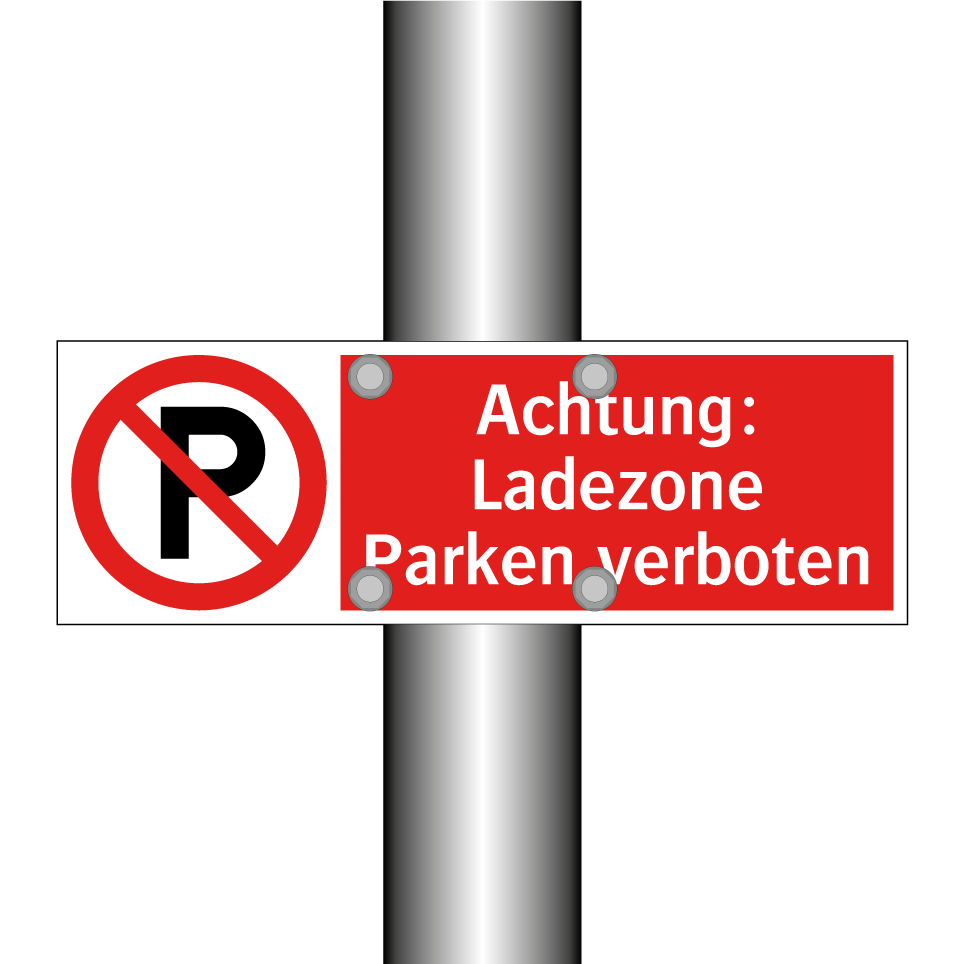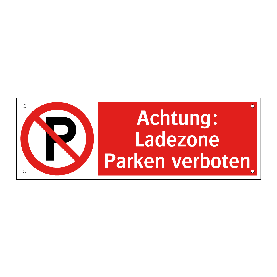 Verbotsschild mit dem Text Achtung: Ladezone Parken verboten