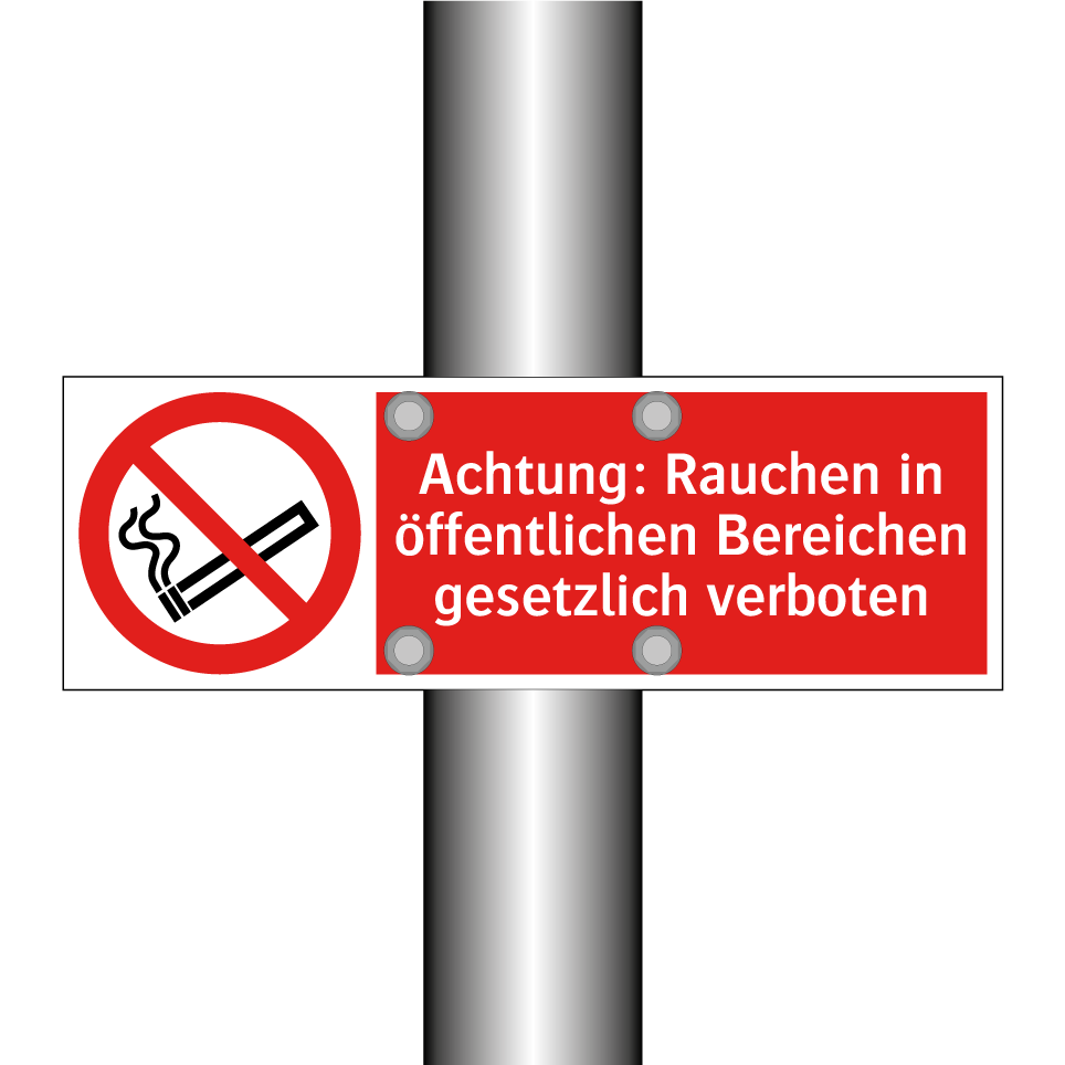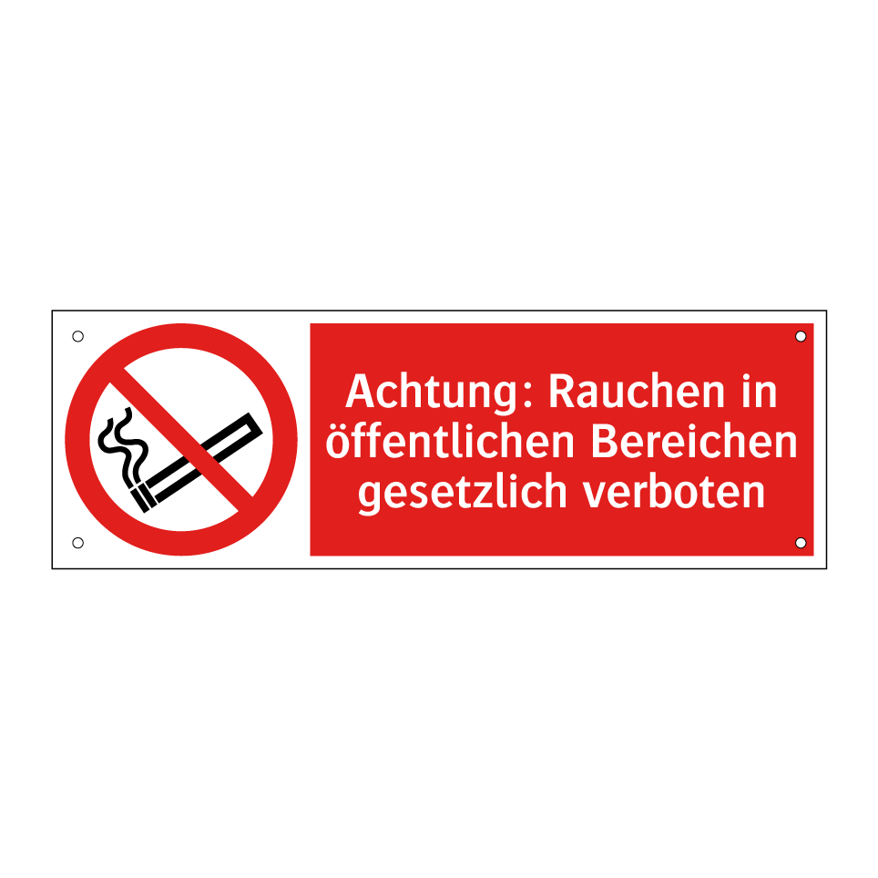 Verbotsschild mit dem Text Achtung: Rauchen in öffentlichen Bereichen gesetzlich verboten