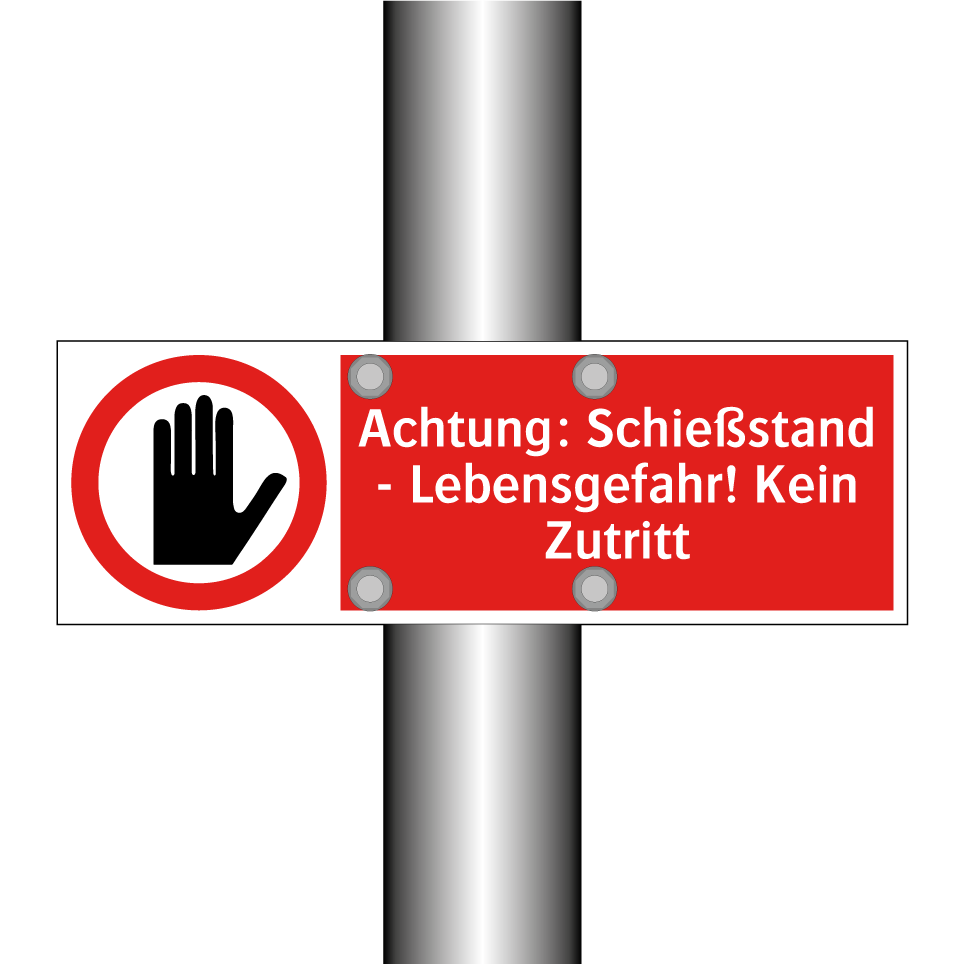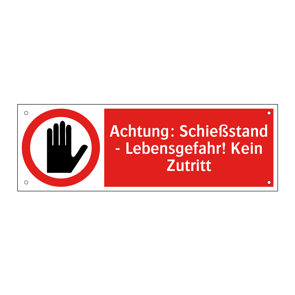 Verbotsschild mit dem Text Achtung: Schießstand - Lebensgefahr! Kein Zutritt