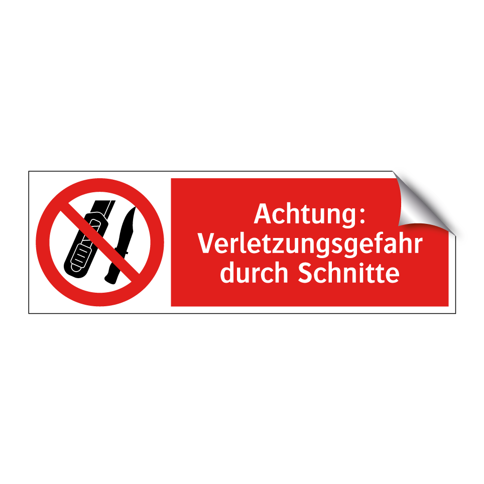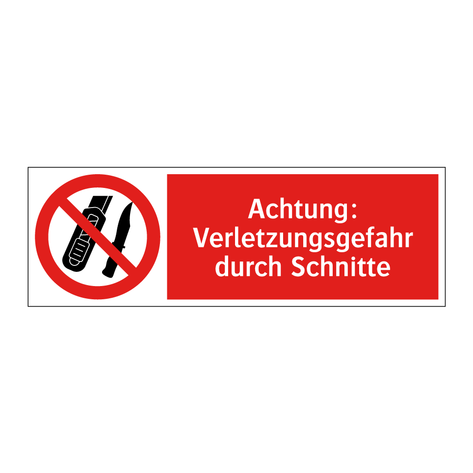 Verbotsschild mit dem Text Achtung: Verletzungsgefahr durch Schnitte
