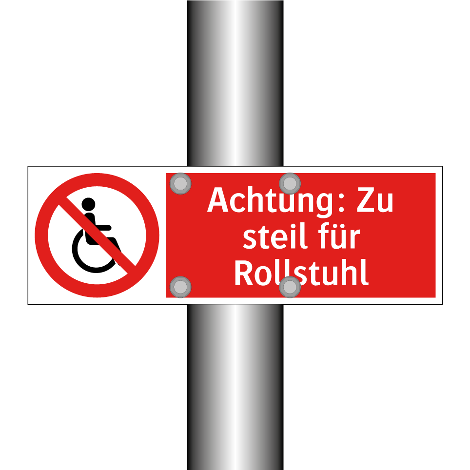 Verbotsschild mit dem Text Achtung: Zu steil für Rollstuhl