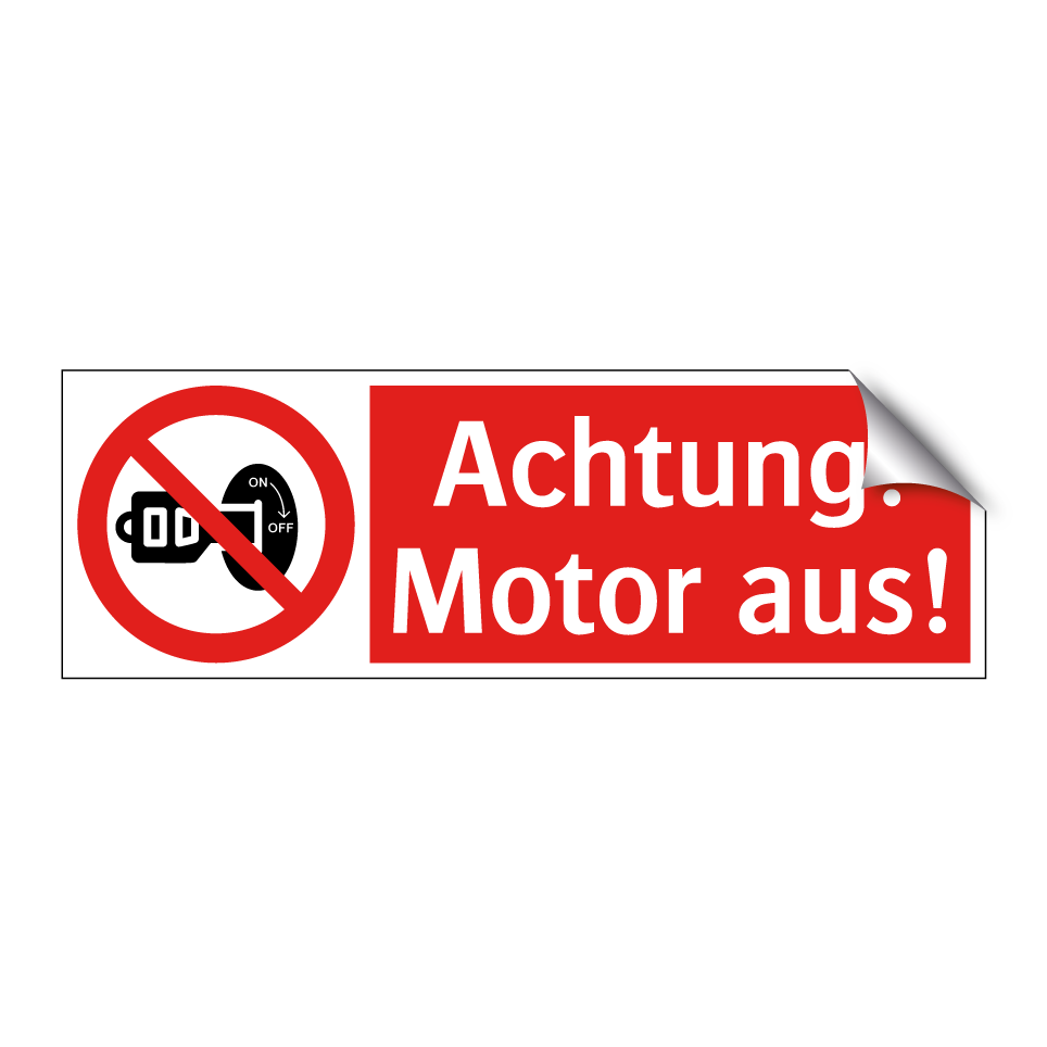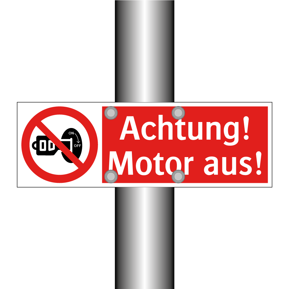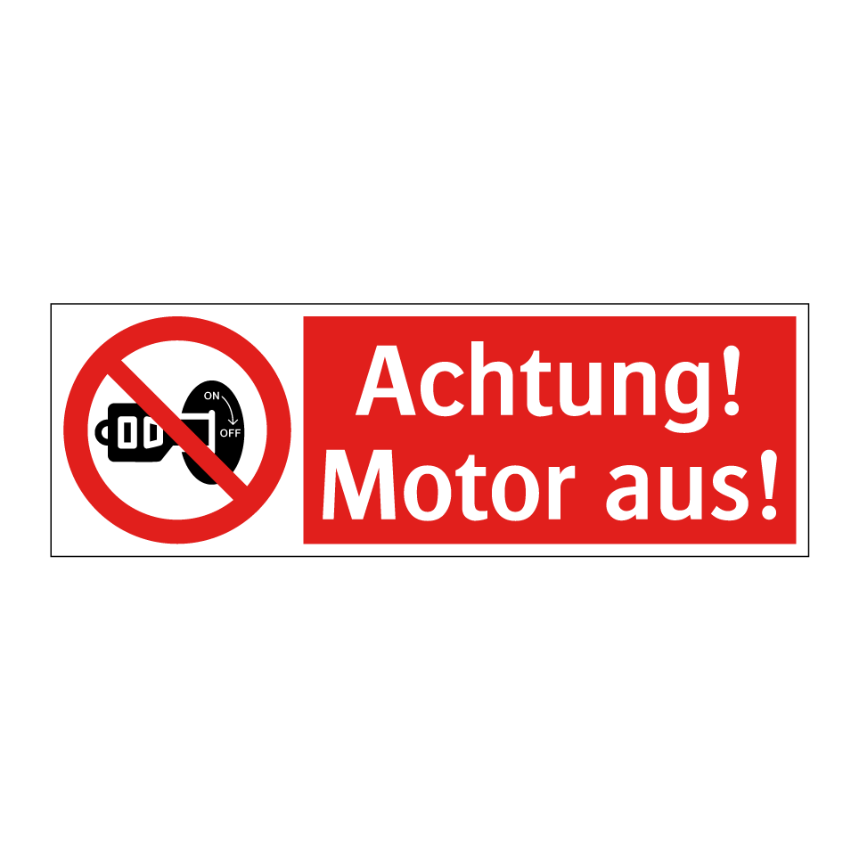 Verbotsschild mit dem Text Achtung! Motor aus!