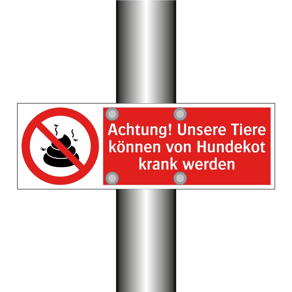 Verbotsschild mit dem Text Achtung! Unsere Tiere können von Hundekot krank werden