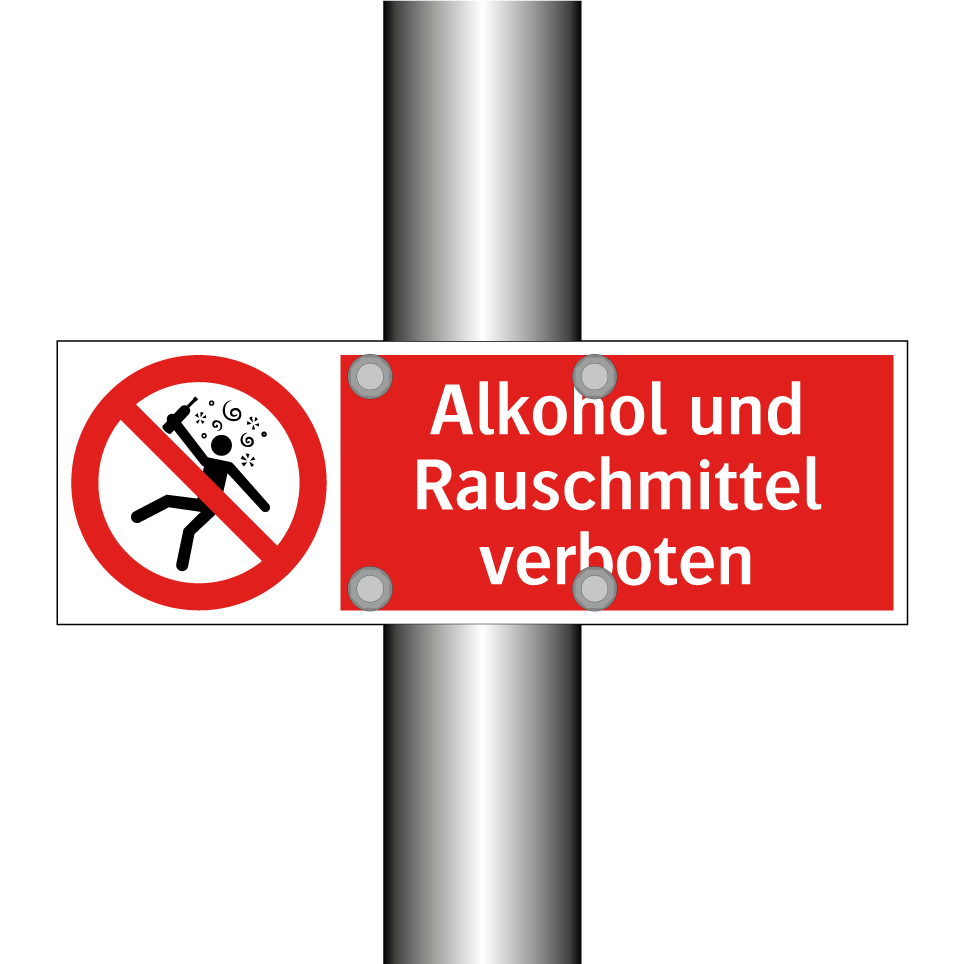 Verbotsschild mit dem Text Alkohol und Rauschmittel verboten