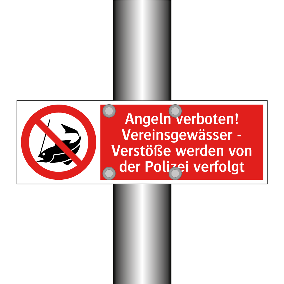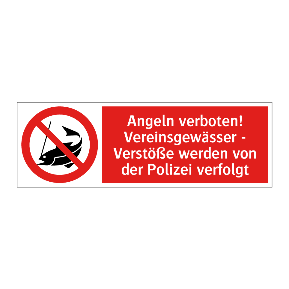 Verbotsschild mit dem Text Angeln verboten! Vereinsgewässer - Verstöße werden von der Polizei verfolgt