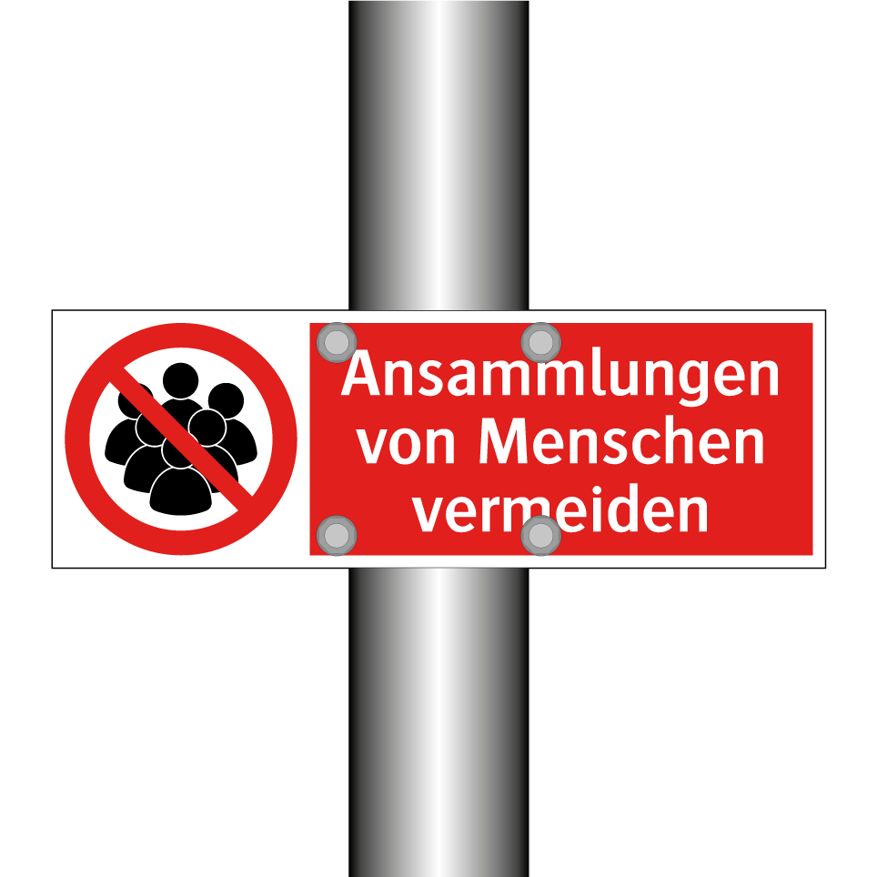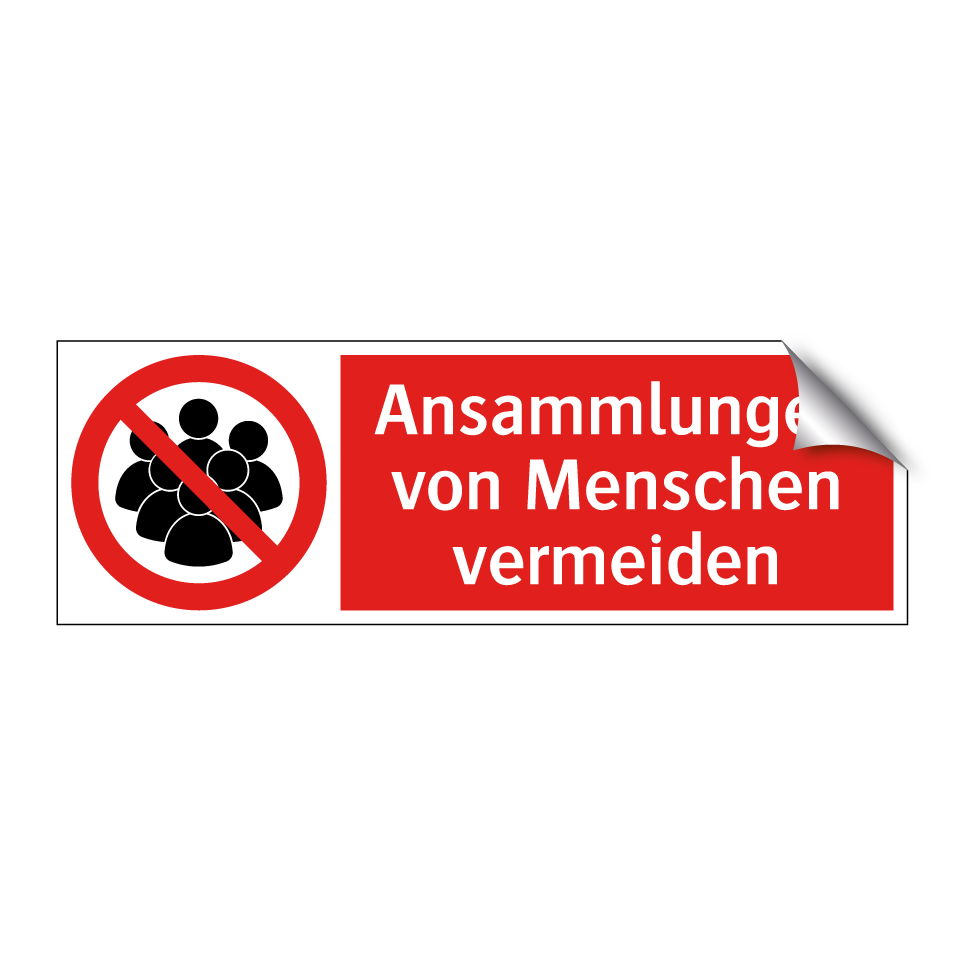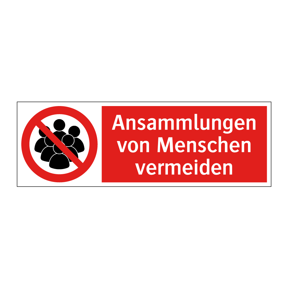 Verbotsschild mit dem Text Ansammlungen von Menschen vermeiden