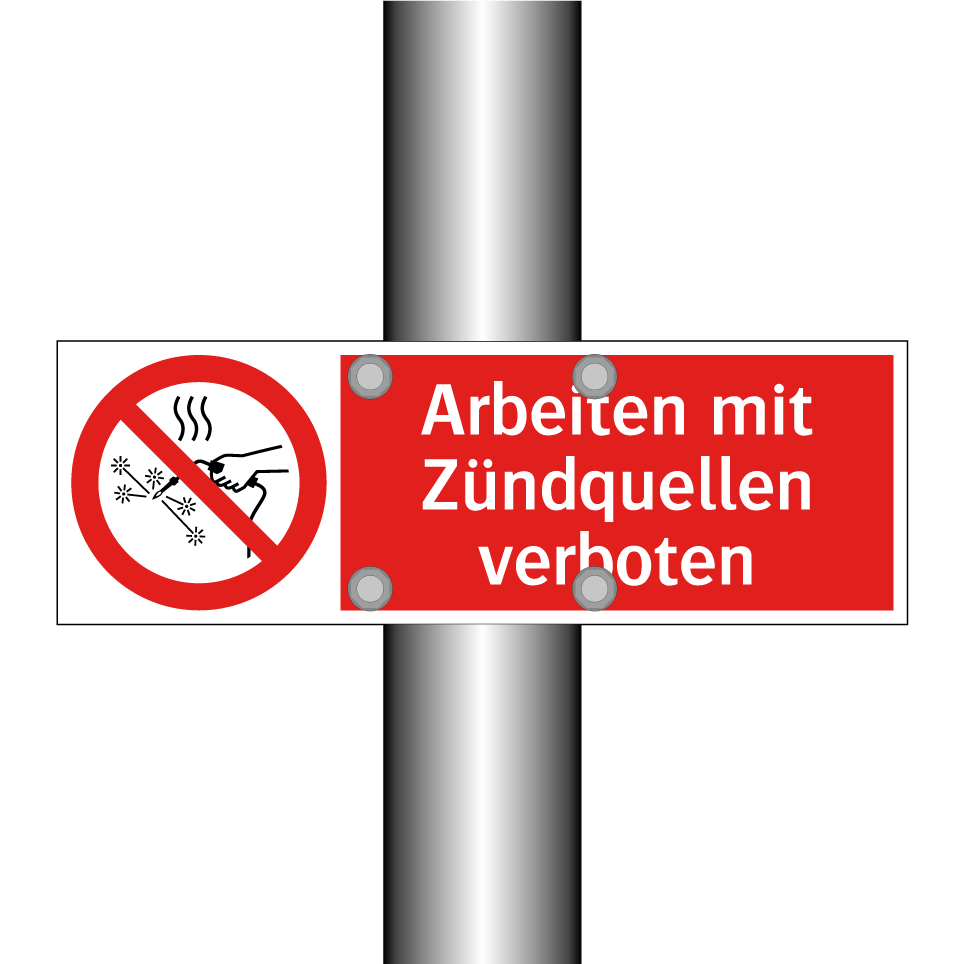 Verbotsschild mit dem Text Arbeiten mit Zündquellen verboten