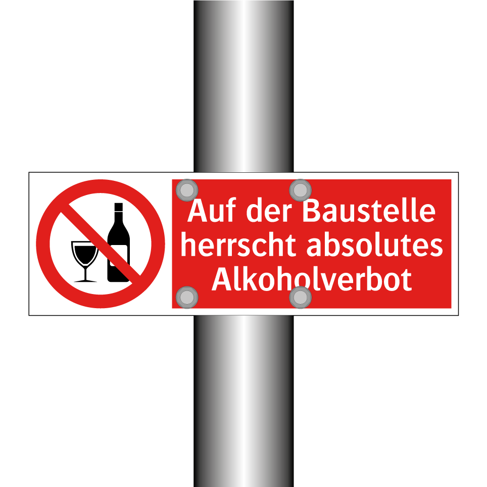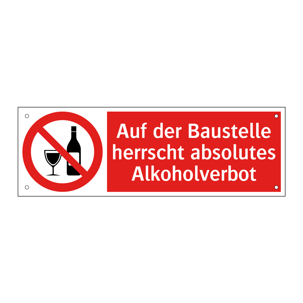 Verbotsschild mit dem Text Auf der Baustelle herrscht absolutes Alkoholverbot