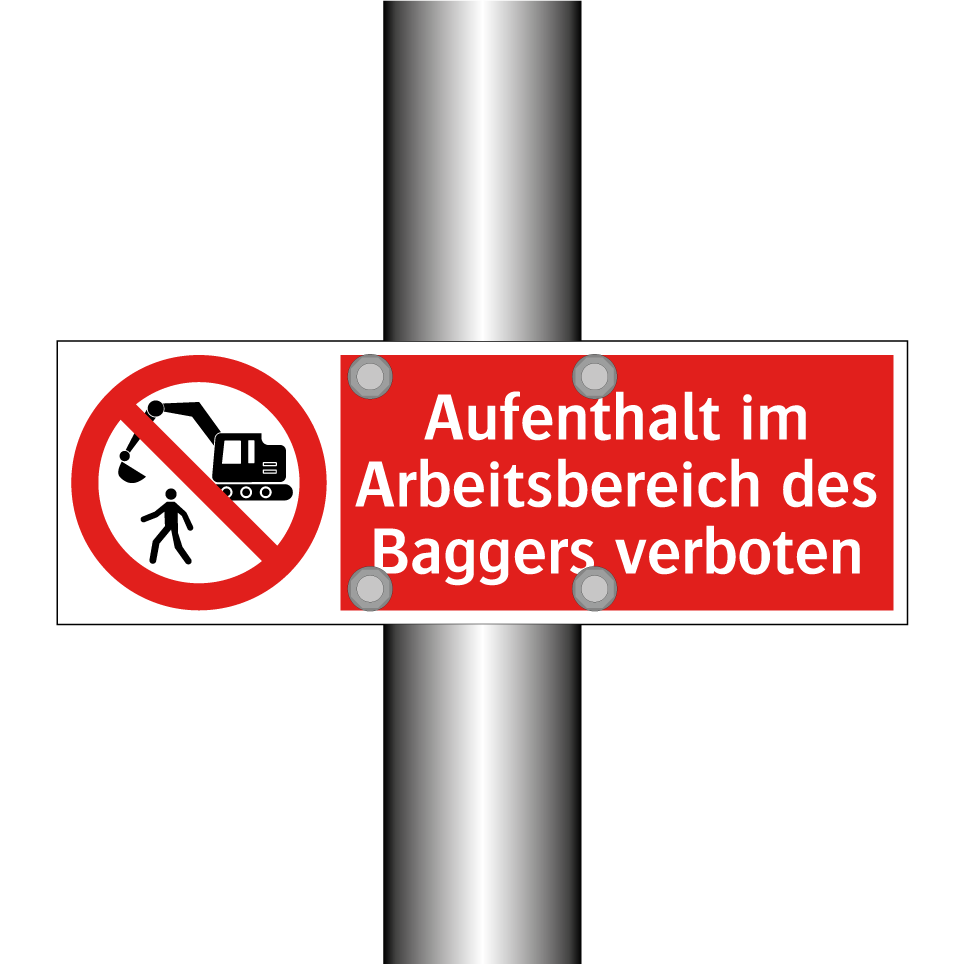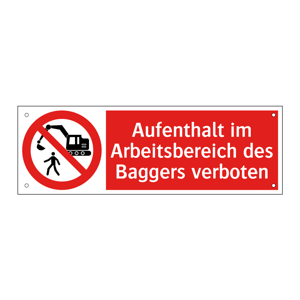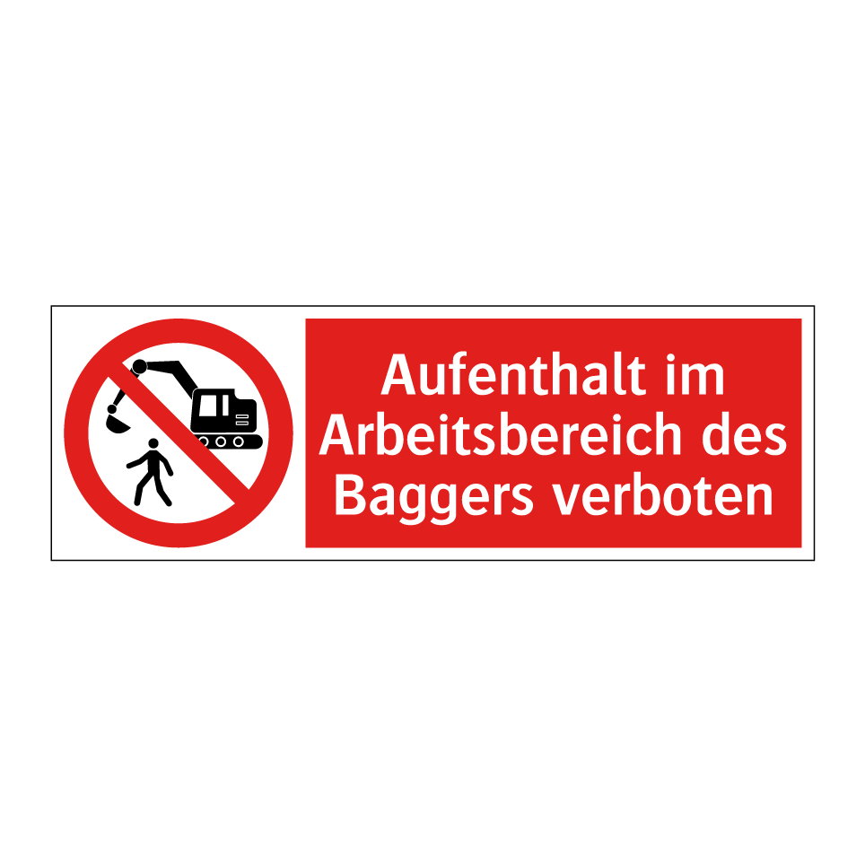 Verbotsschild mit dem Text Aufenthalt im Arbeitsbereich des Baggers verboten