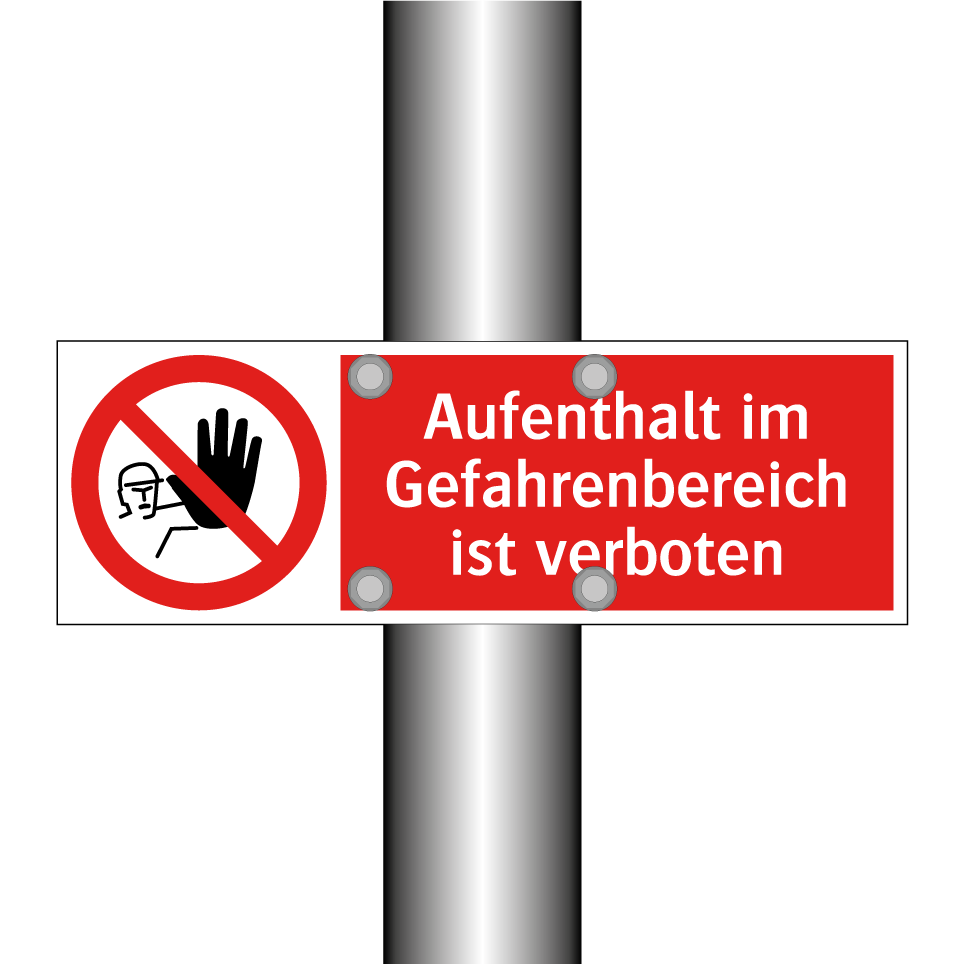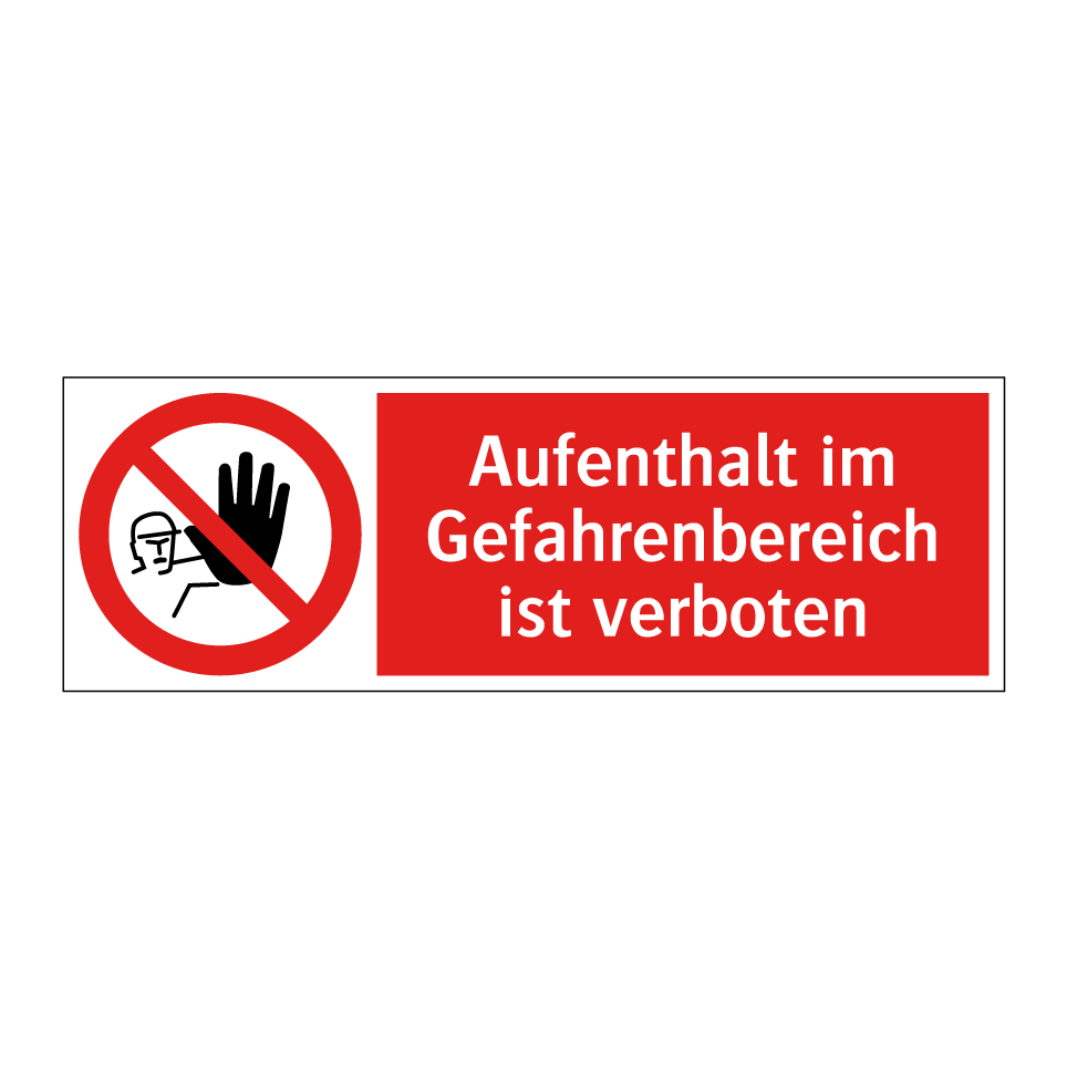 Verbotsschild mit dem Text Aufenthalt im Gefahrenbereich ist verboten