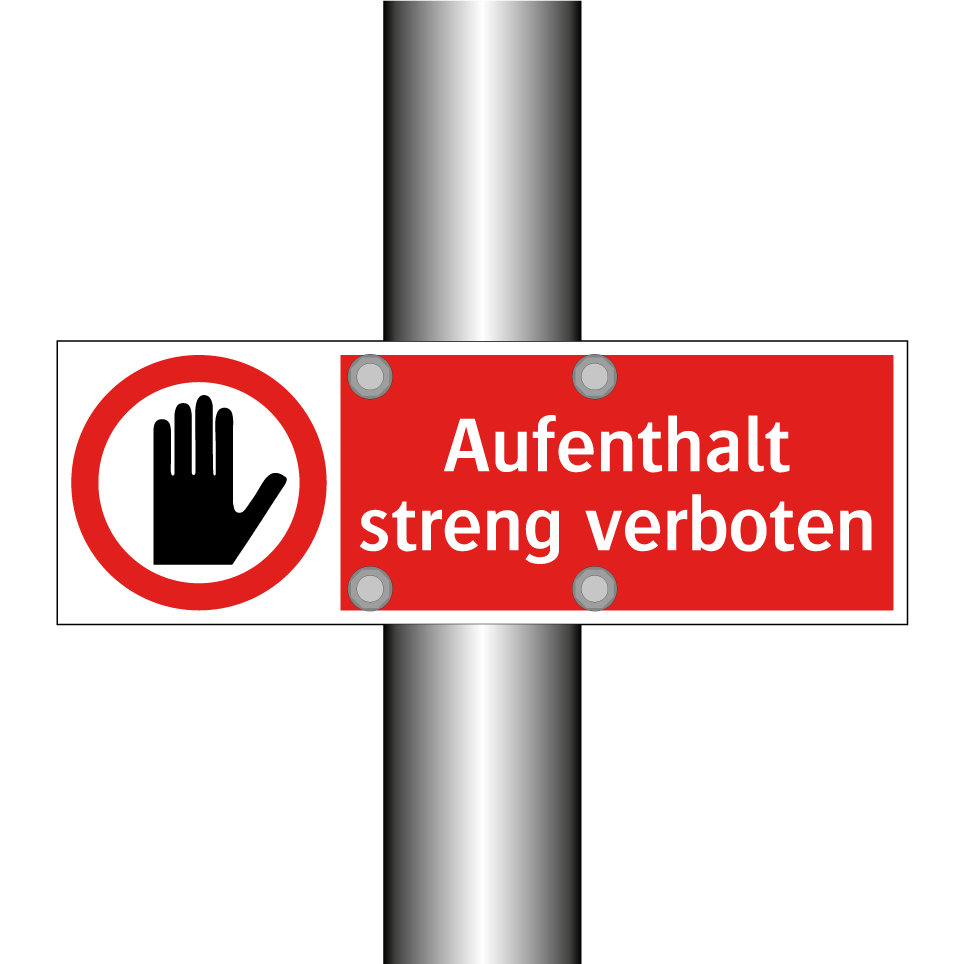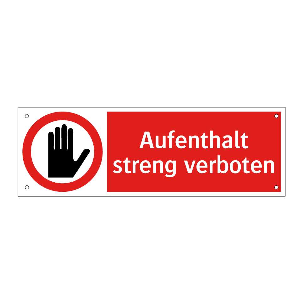 Verbotsschild mit dem Text Aufenthalt streng verboten