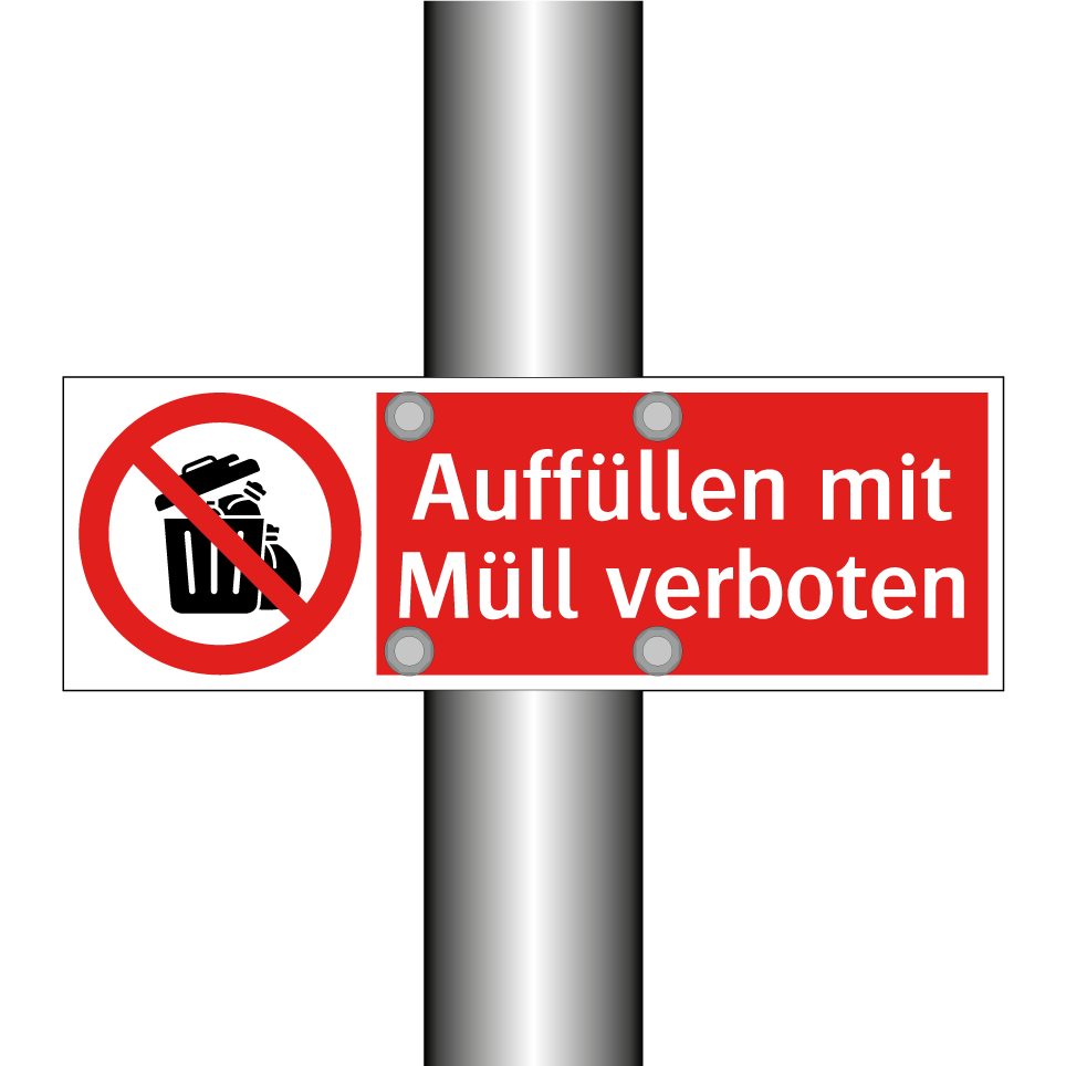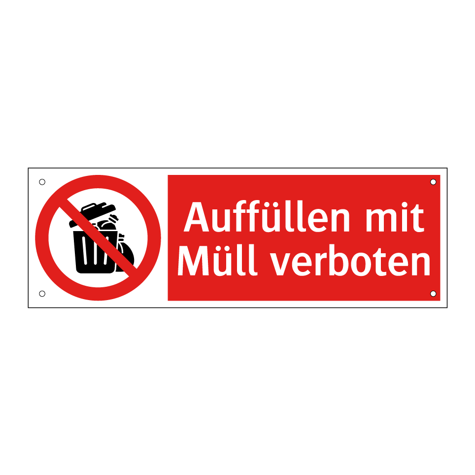 Verbotsschild mit dem Text Auffüllen mit Müll verboten