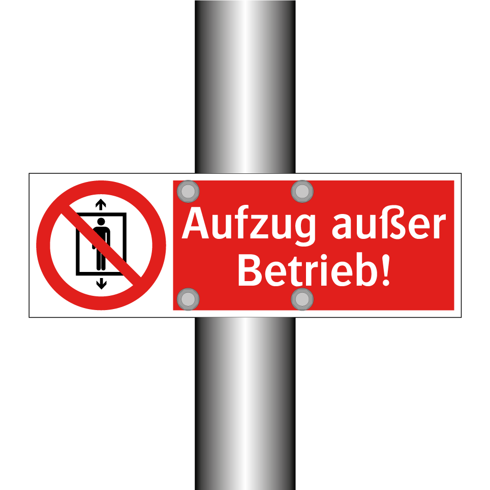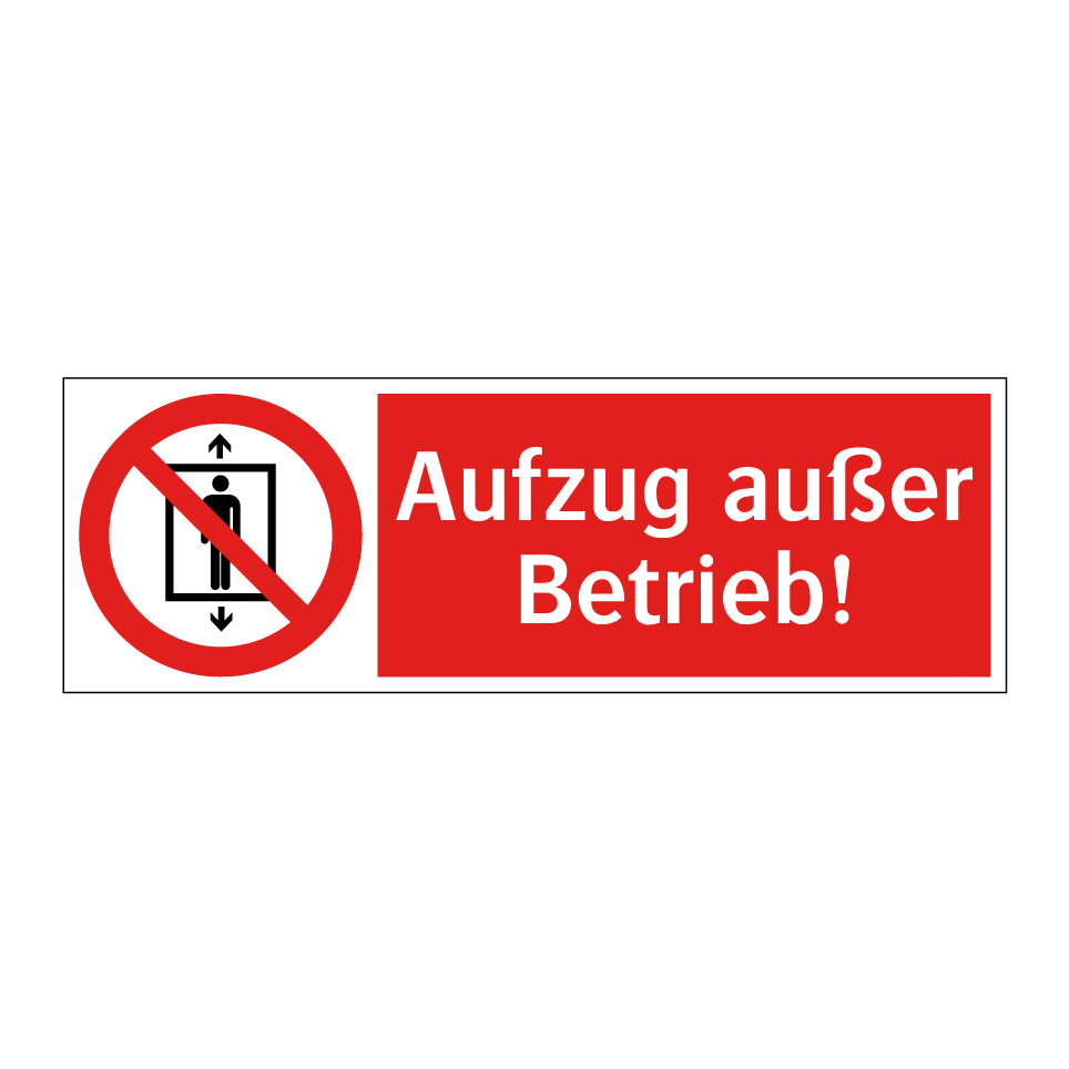 Verbotsschild mit dem Text Aufzug außer Betrieb!