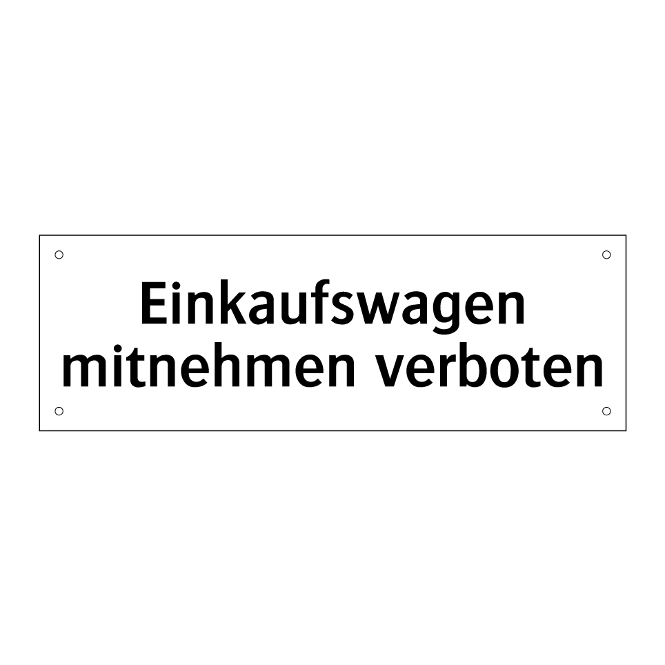 Verbotsschild mit dem Text Einkaufswagen mitnehmen verboten