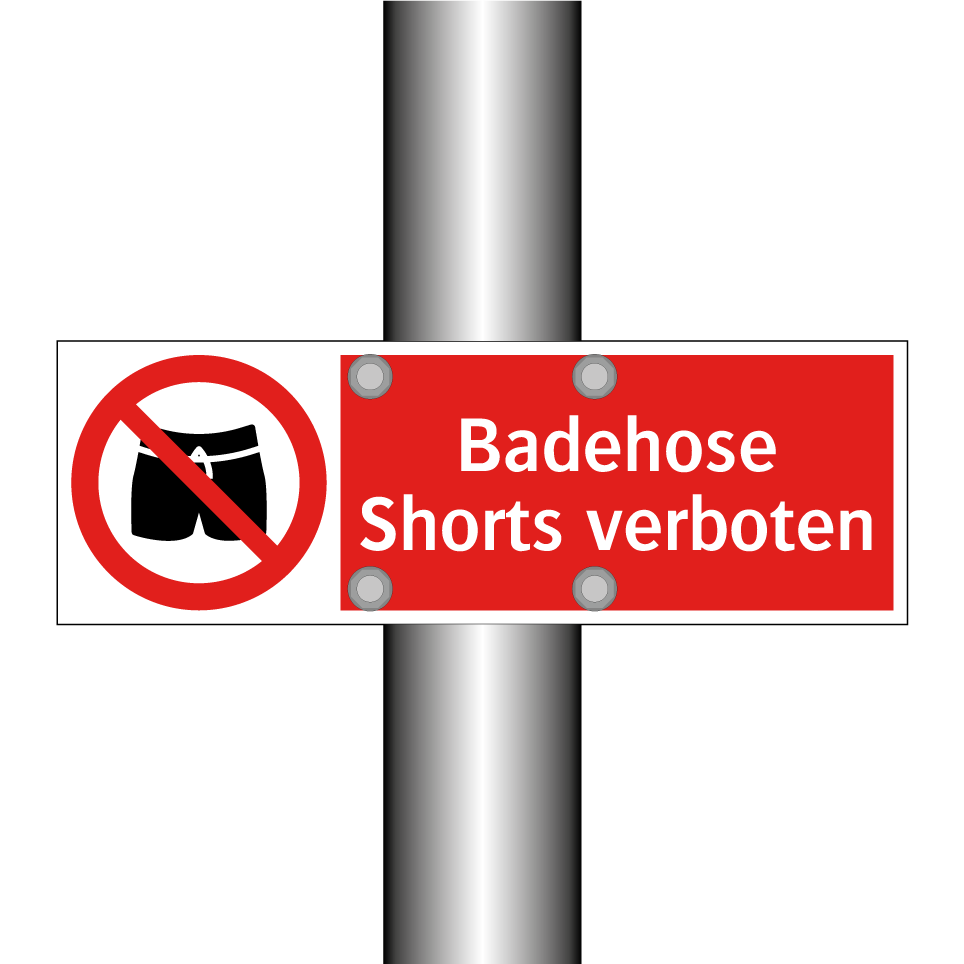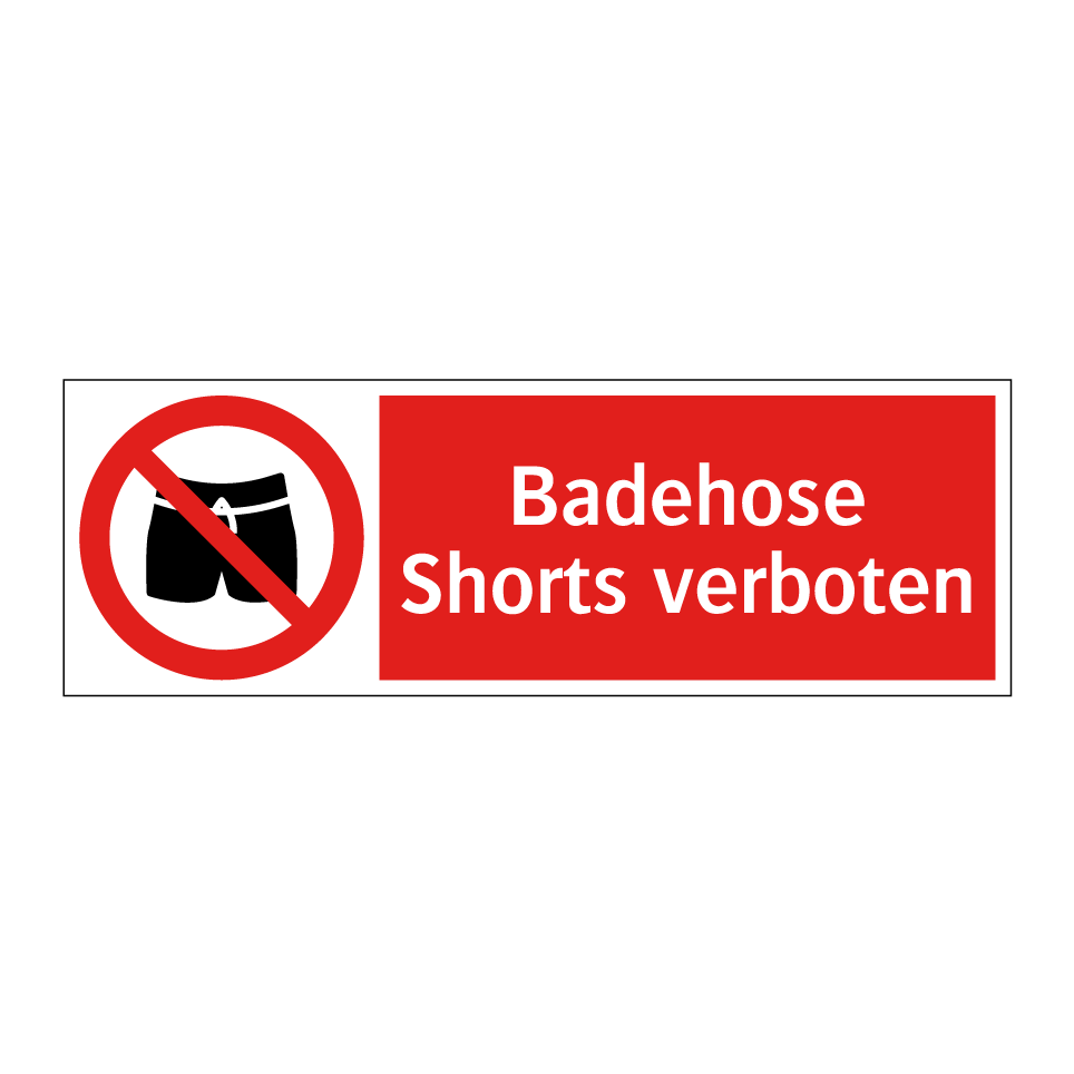 Verbotsschild mit dem Text Badehose Shorts verboten