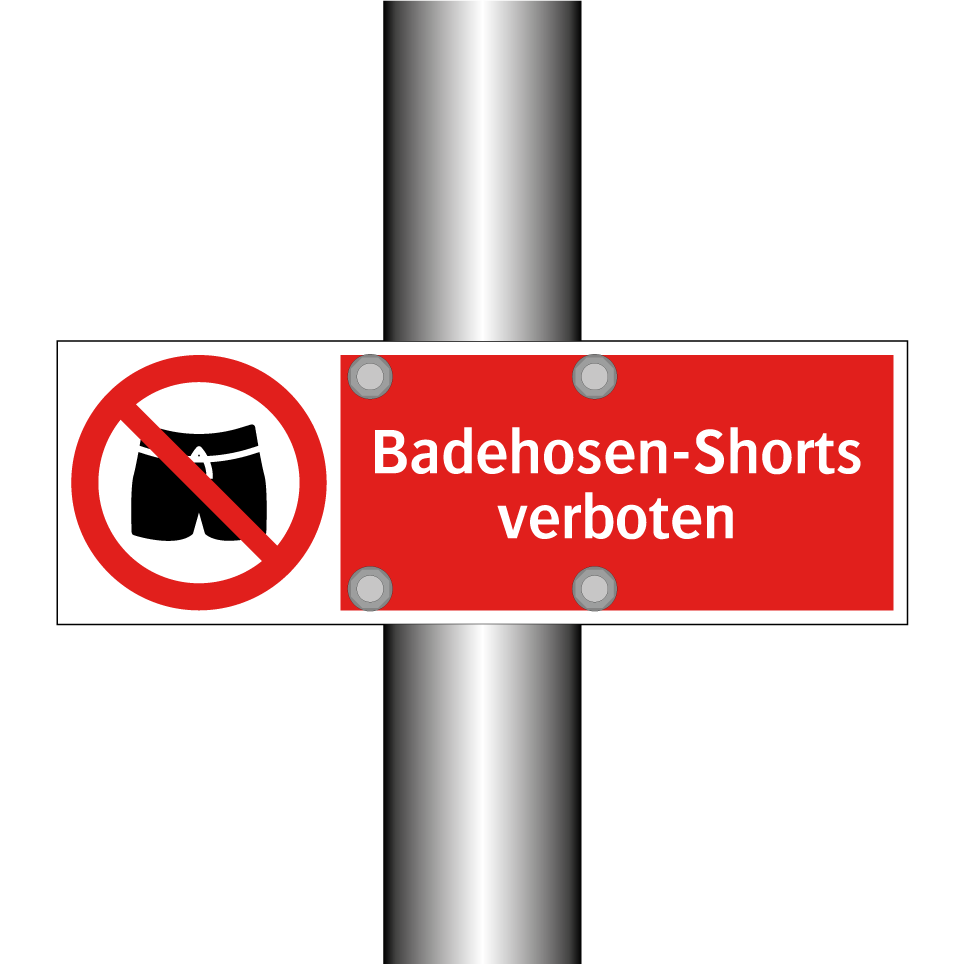 Verbotsschild mit dem Text Badehosen-Shorts verboten
