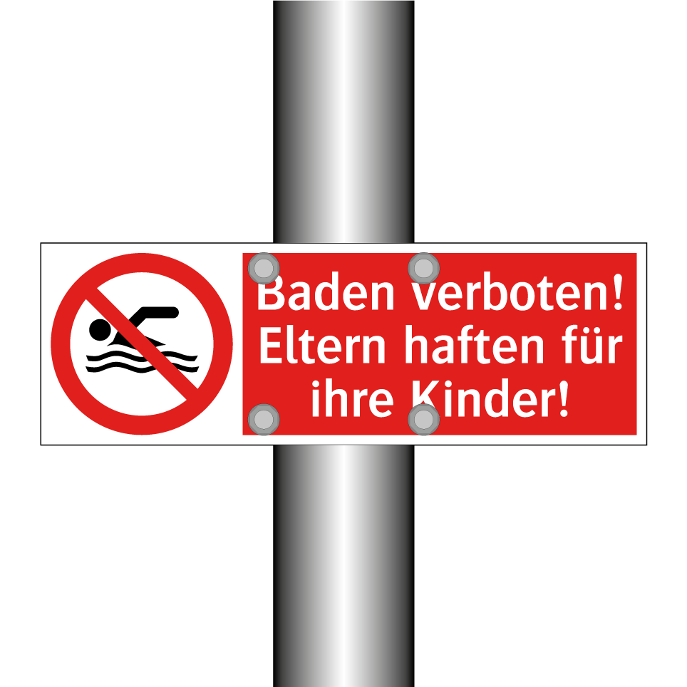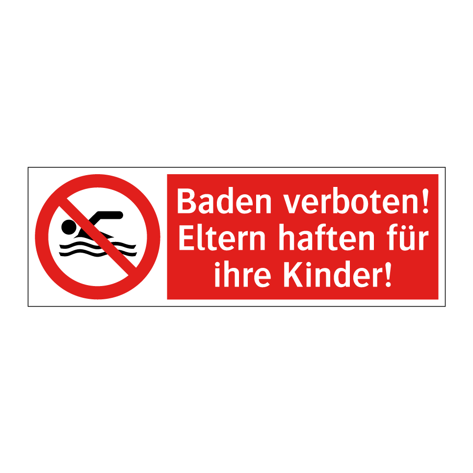 Verbotsschild mit dem Text Baden verboten! Eltern haften für ihre Kinder!