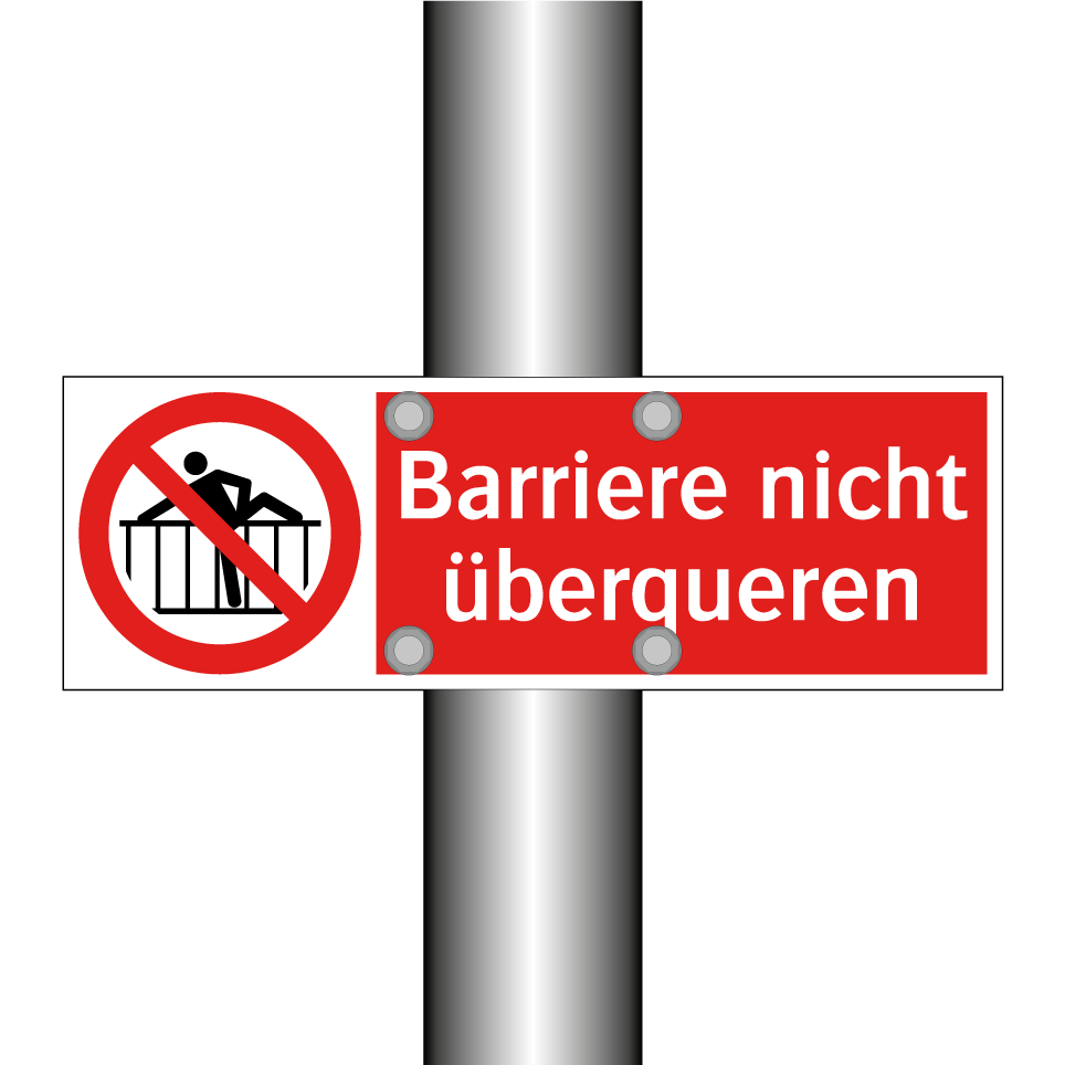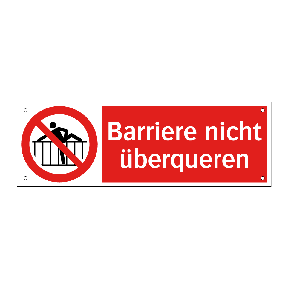 Verbotsschild mit dem Text Barriere nicht überqueren