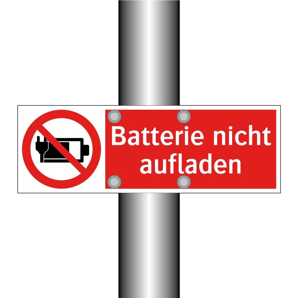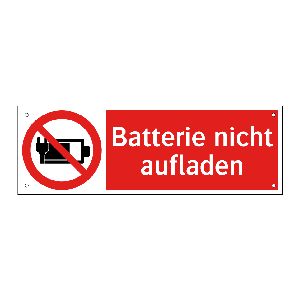 Verbotsschild mit dem Text Batterie nicht aufladen
