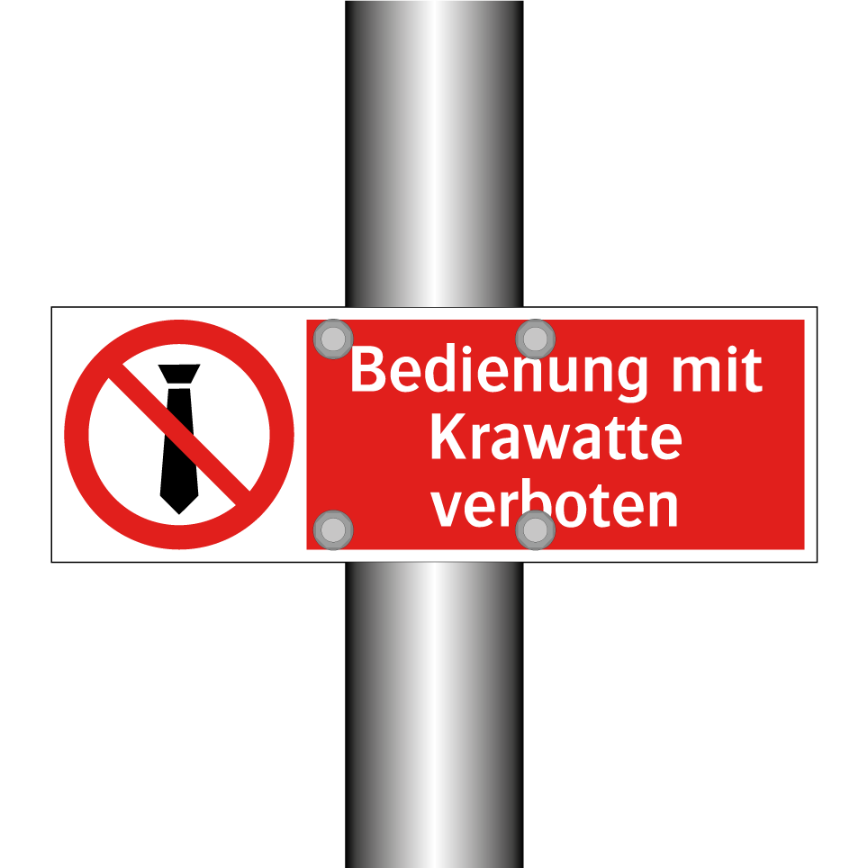 Verbotsschild mit dem Text Bedienung mit Krawatte verboten