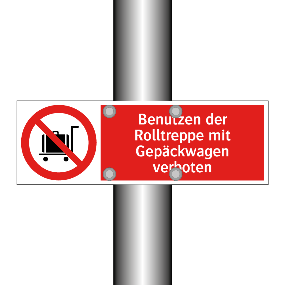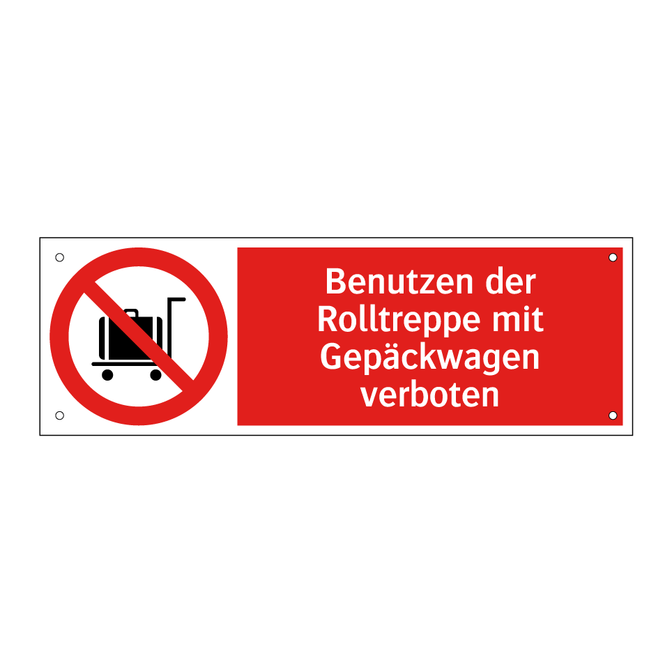 Verbotsschild mit dem Text Benutzen der Rolltreppe mit Gepäckwagen verboten