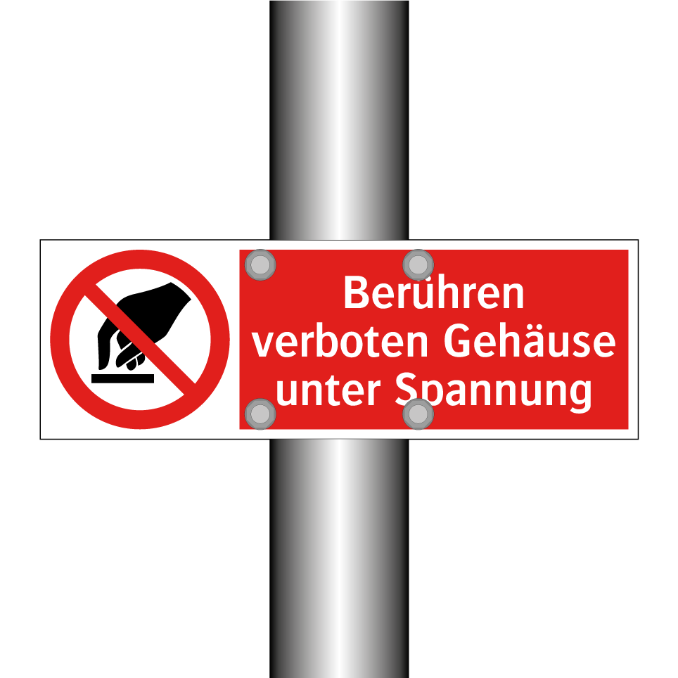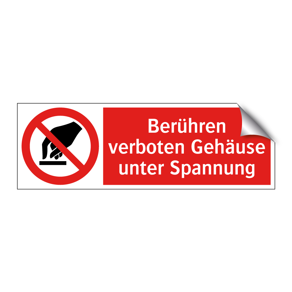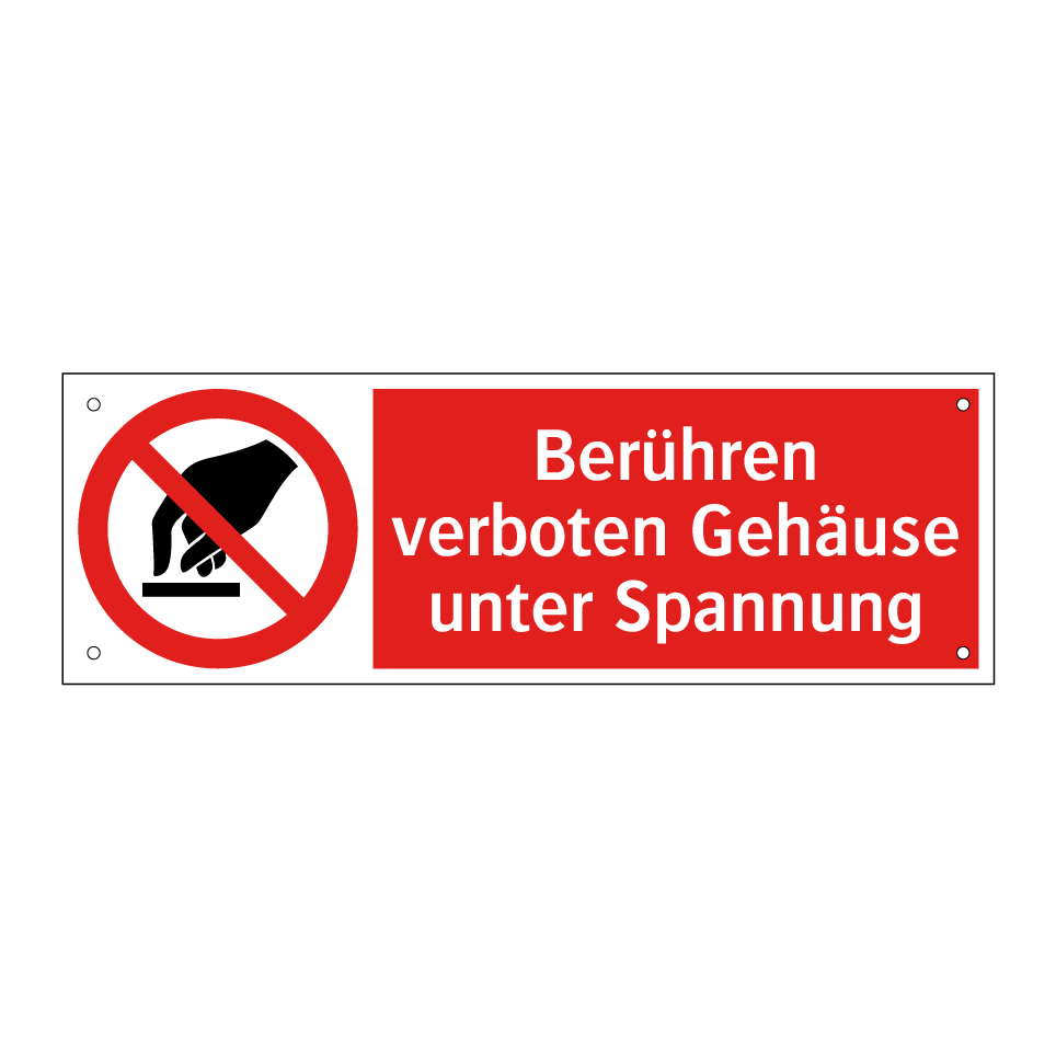 Verbotsschild mit dem Text Berühren verboten Gehäuse unter Spannung