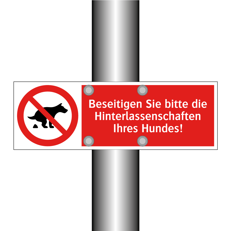 Verbotsschild mit dem Text Beseitigen Sie bitte die Hinterlassenschaften Ihres Hundes!