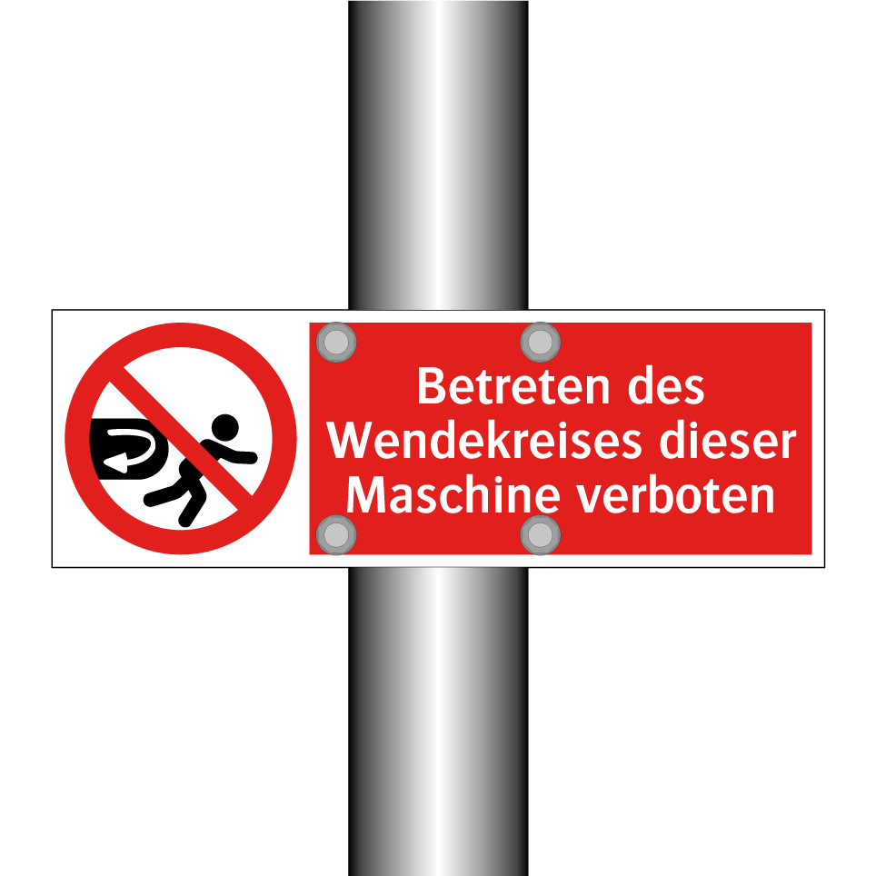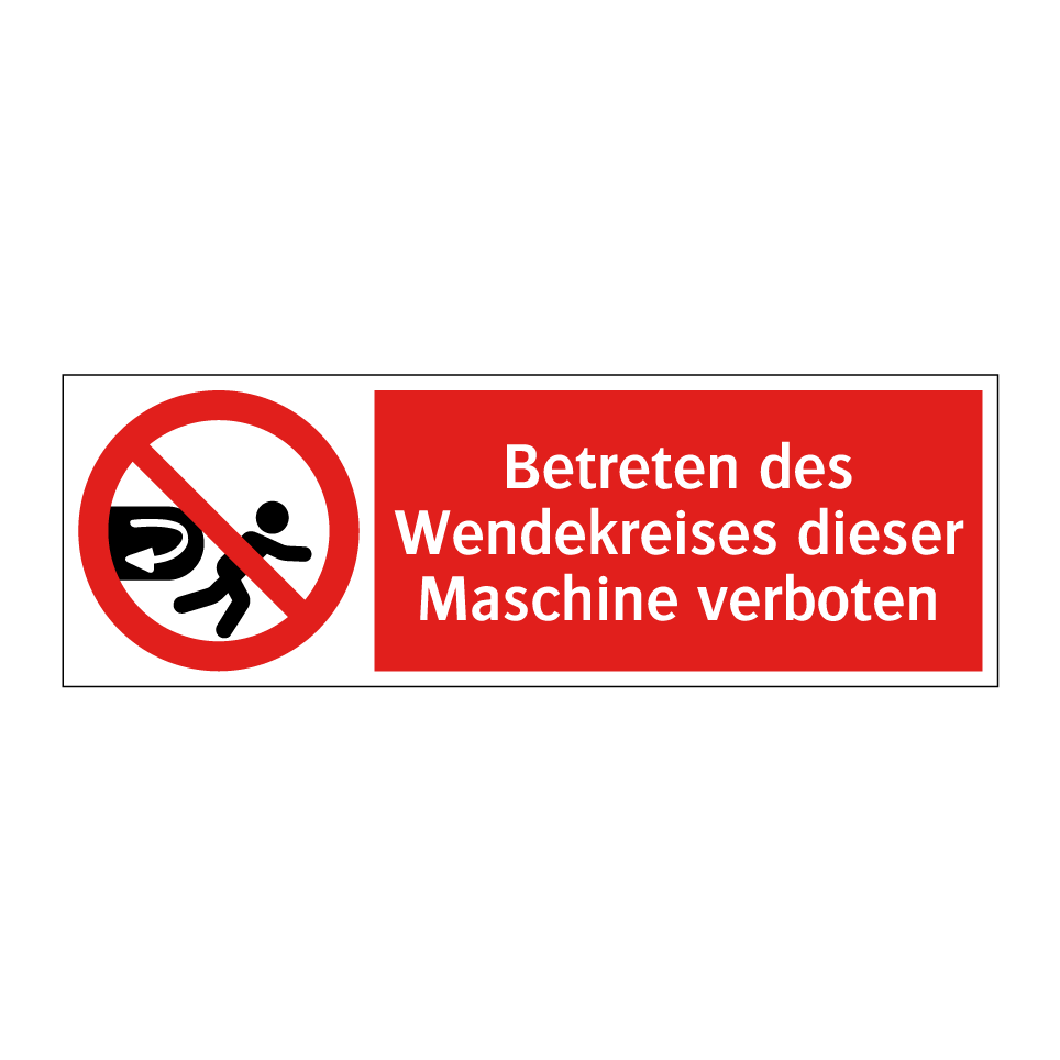 Verbotsschild mit dem Text Betreten des Wendekreises dieser Maschine verboten