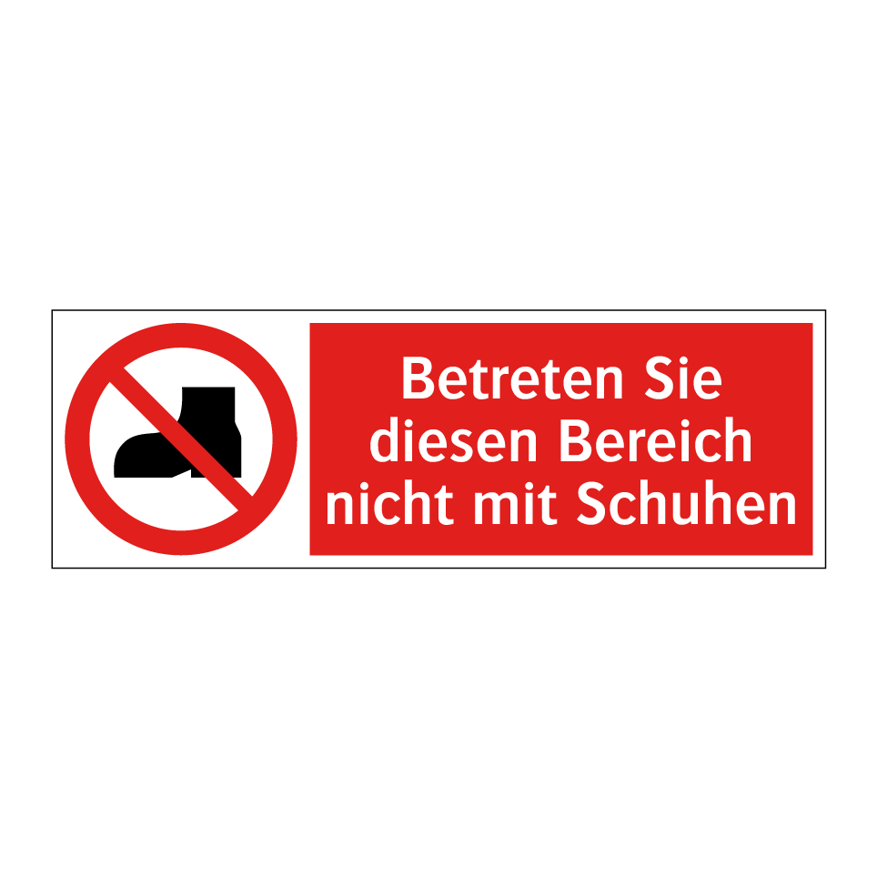 Verbotsschild mit dem Text Betreten Sie diesen Bereich nicht mit Schuhen