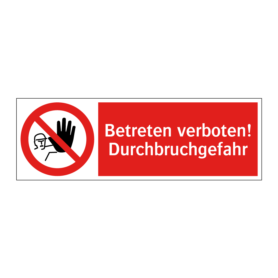 Verbotsschild mit dem Text Betreten verboten! Durchbruchgefahr