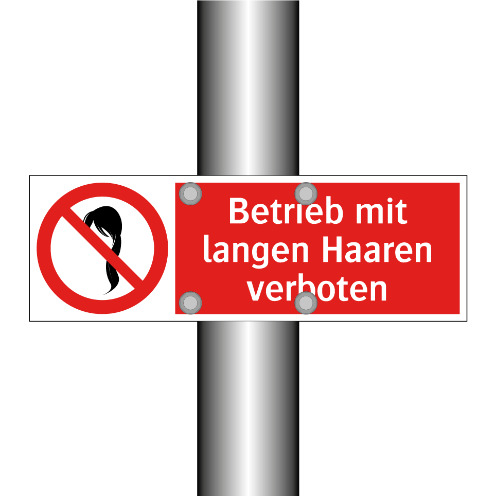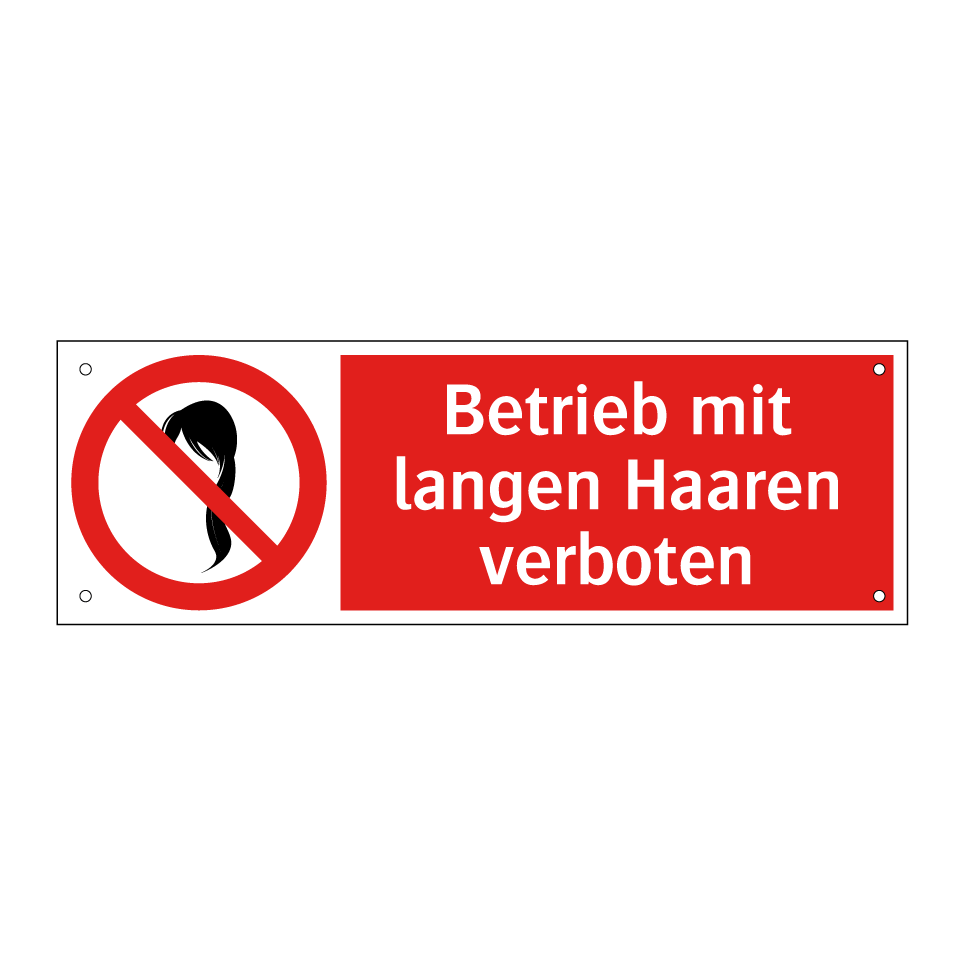 Verbotsschild mit dem Text Betrieb mit langen Haaren verboten