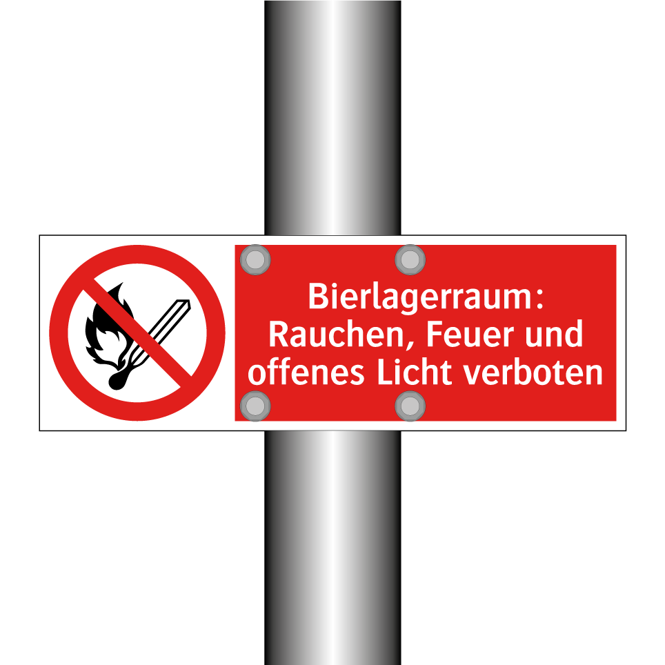 Verbotsschild mit dem Text Bierlagerraum: Rauchen, Feuer und offenes Licht verboten