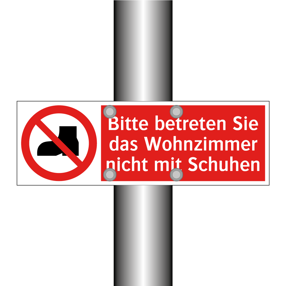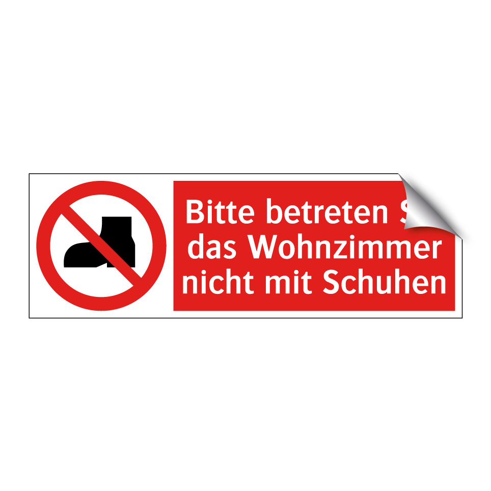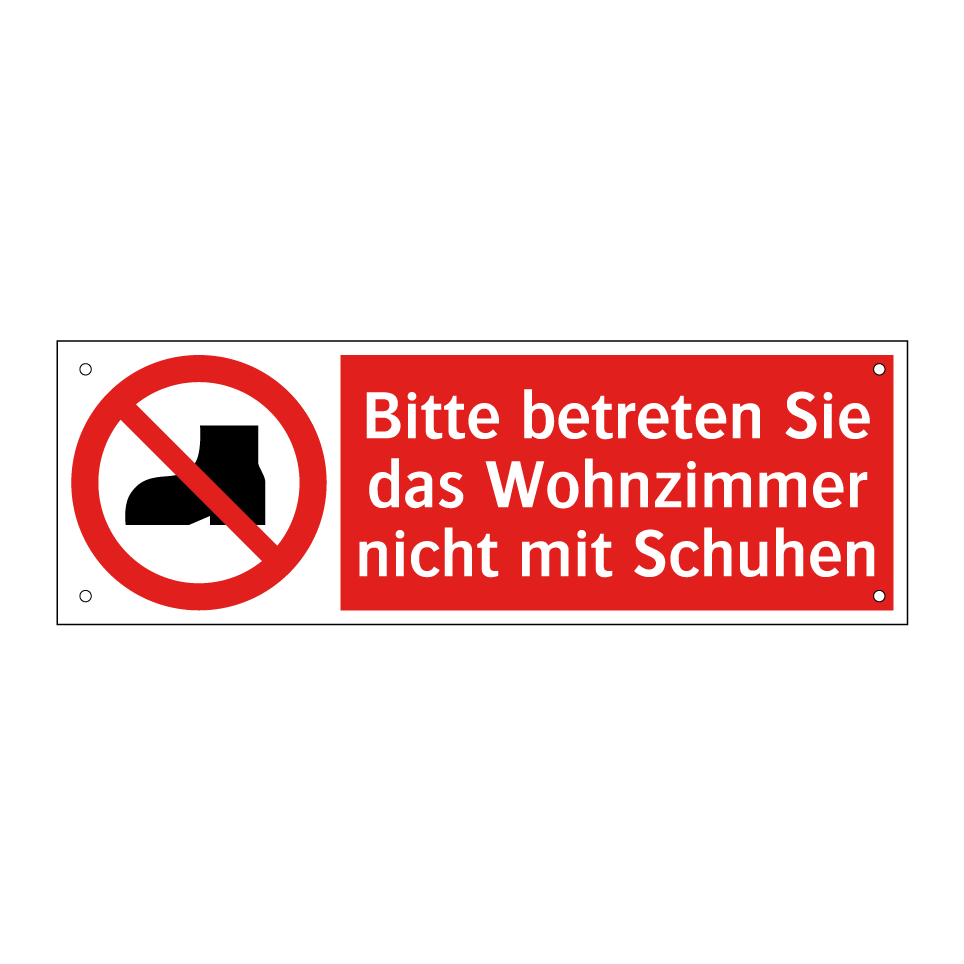 Verbotsschild mit dem Text Bitte betreten Sie das Wohnzimmer nicht mit Schuhen