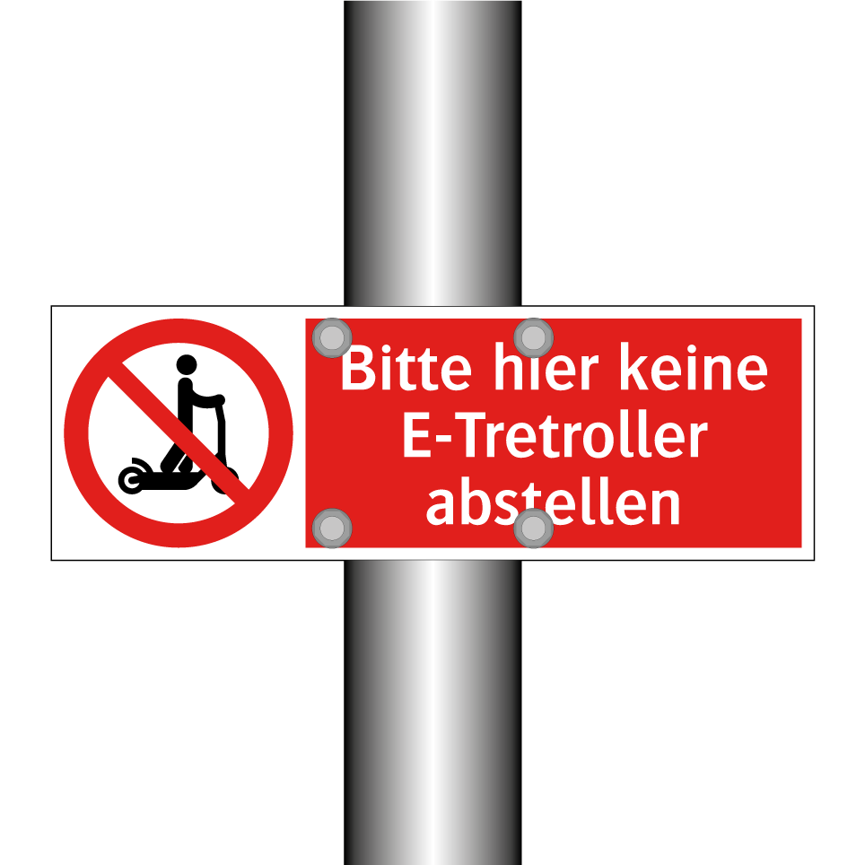 Verbotsschild mit dem Text Bitte hier keine E-Tretroller abstellen