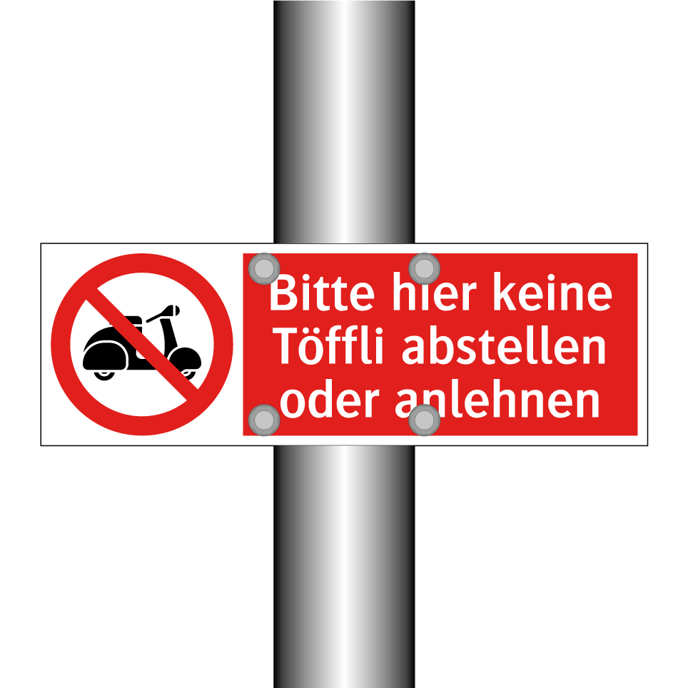 Verbotsschild mit dem Text Bitte hier keine Töffli abstellen oder anlehnen