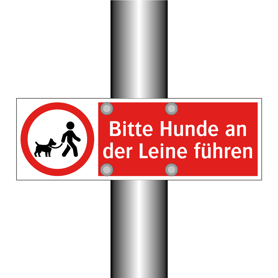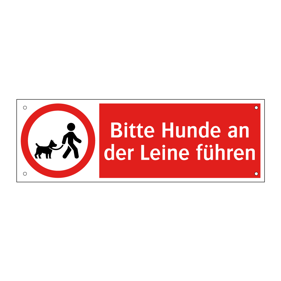 Verbotsschild mit dem Text Bitte Hunde an der Leine führen