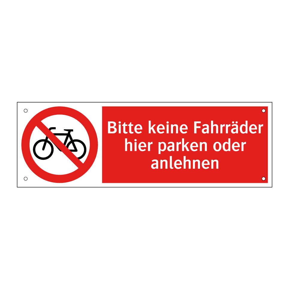 Verbotsschild mit dem Text Bitte keine Fahrräder hier parken oder anlehnen