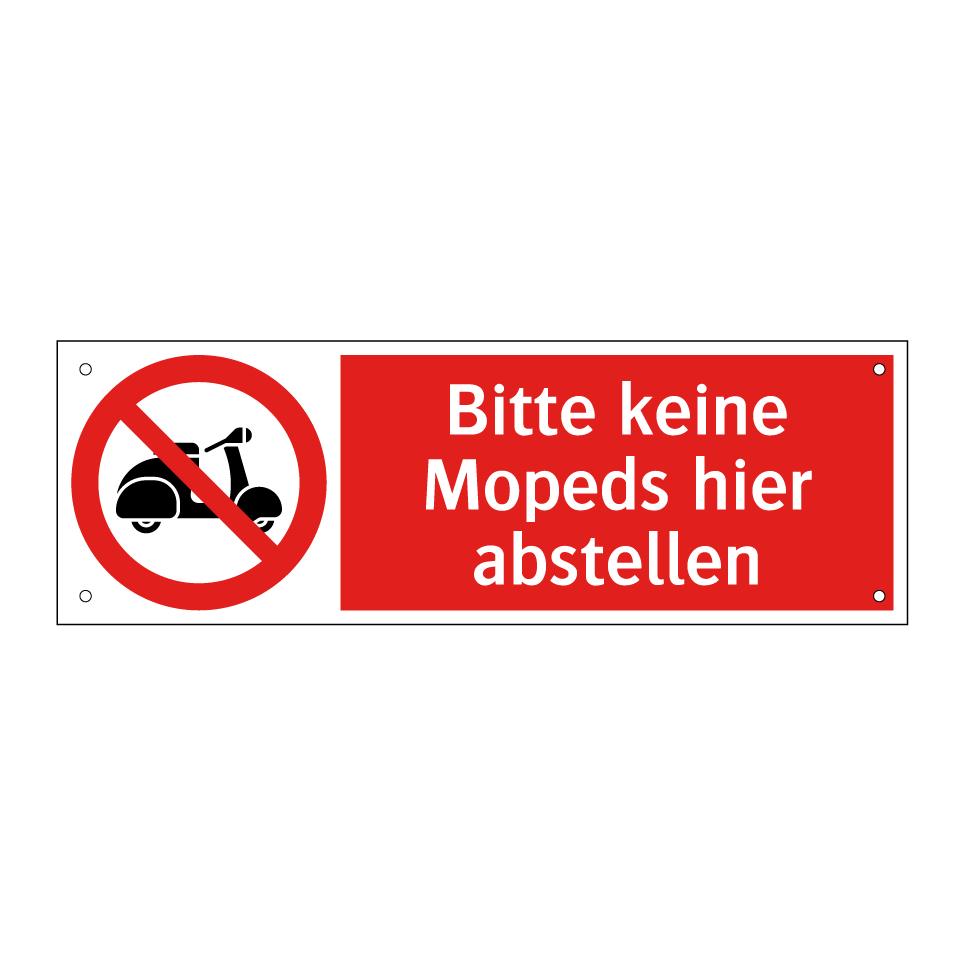 Verbotsschild mit dem Text Bitte keine Mopeds hier abstellen