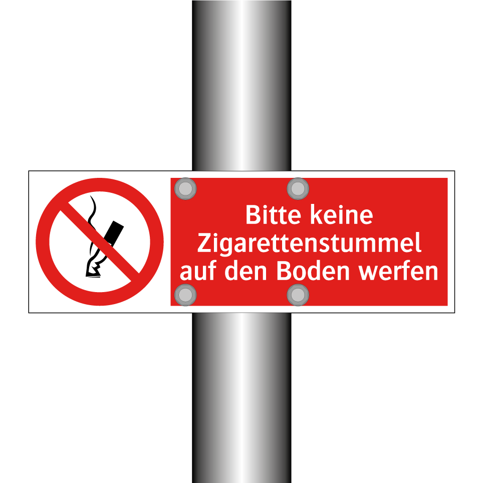 Verbotsschild mit dem Text Bitte keine Zigarettenstummel auf den Boden werfen