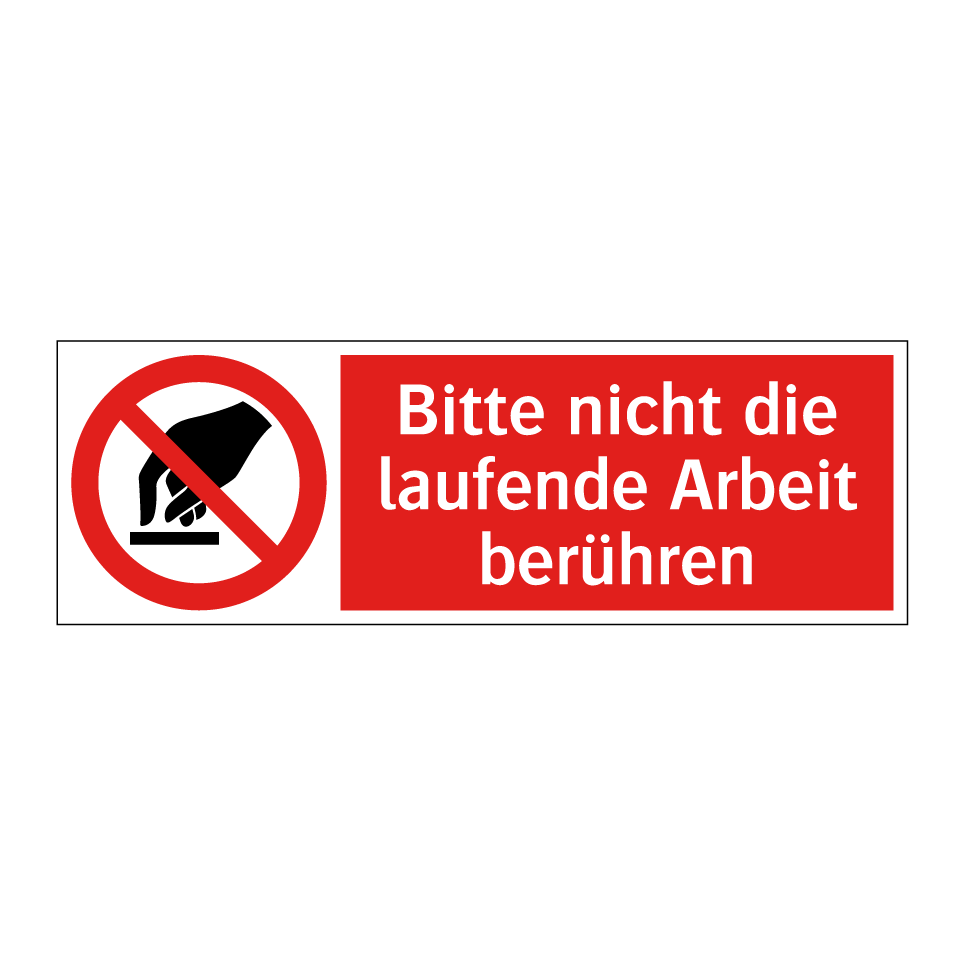 Verbotsschild mit dem Text Bitte nicht die laufende Arbeit berühren