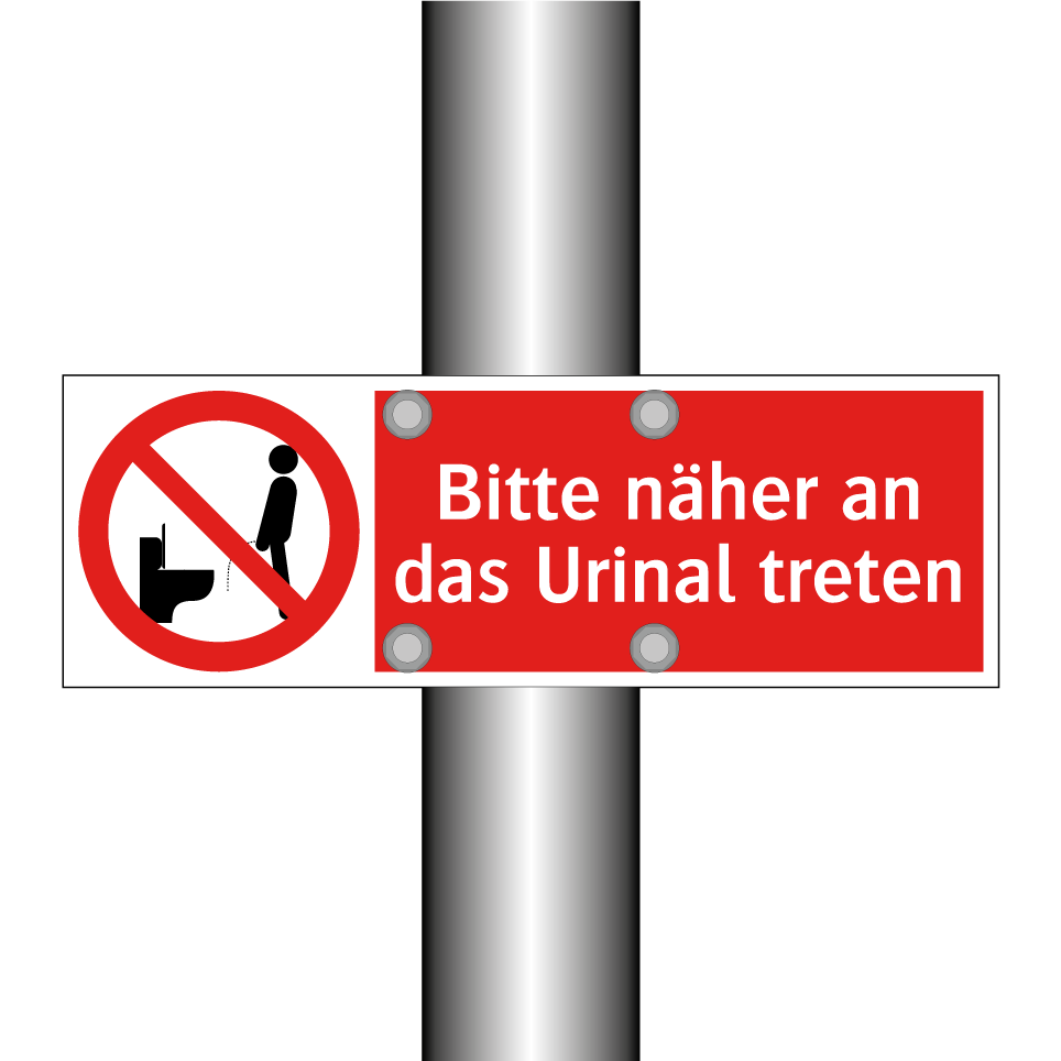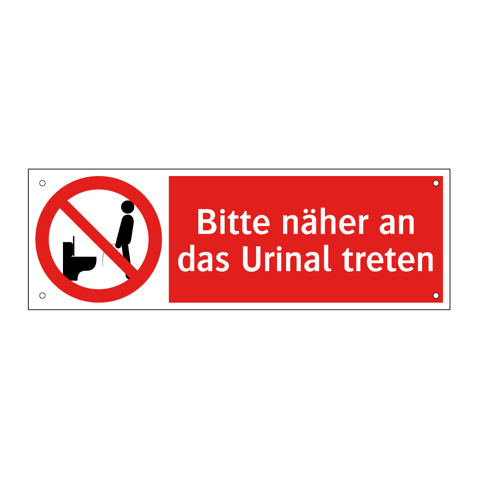 Verbotsschild mit dem Text Bitte näher an das Urinal treten