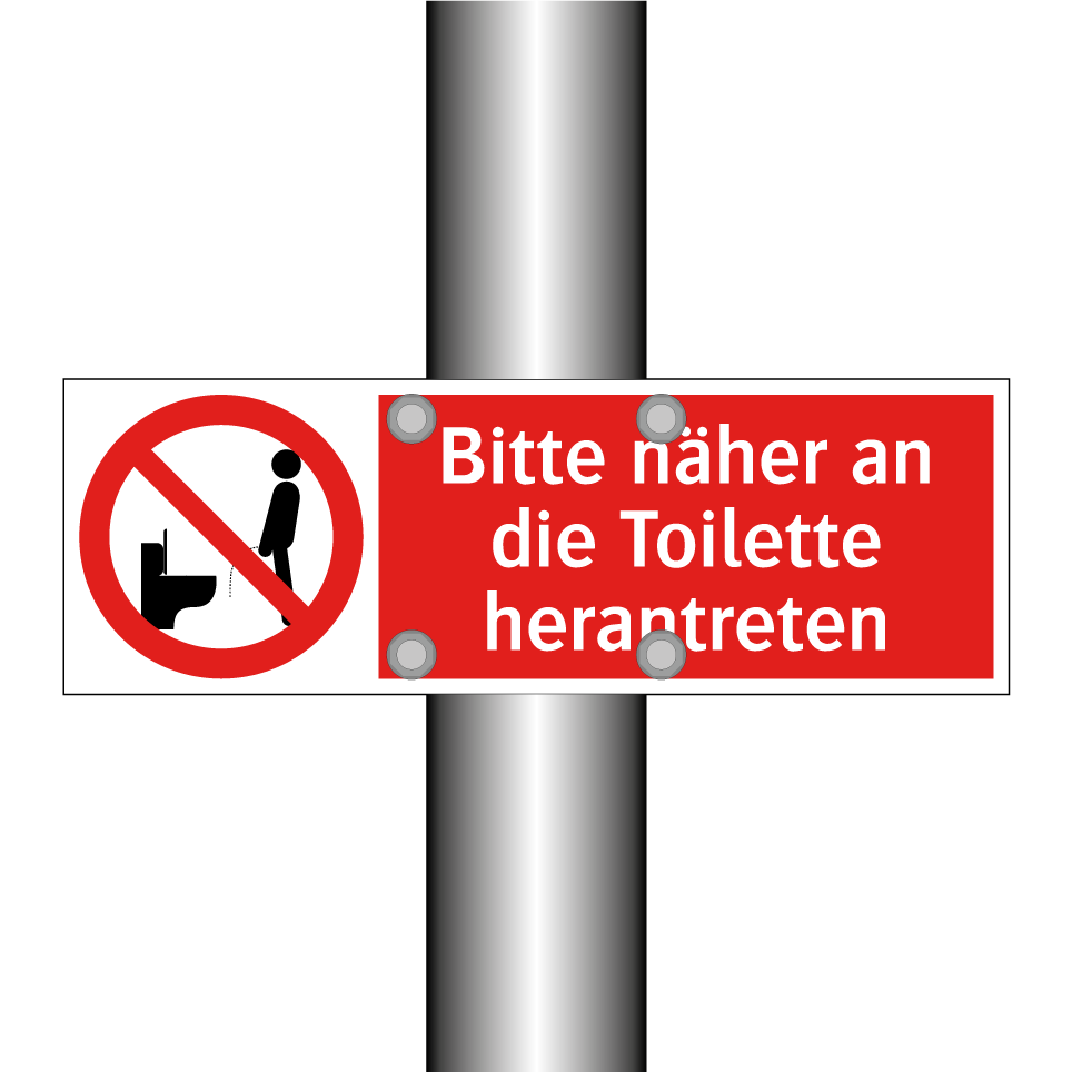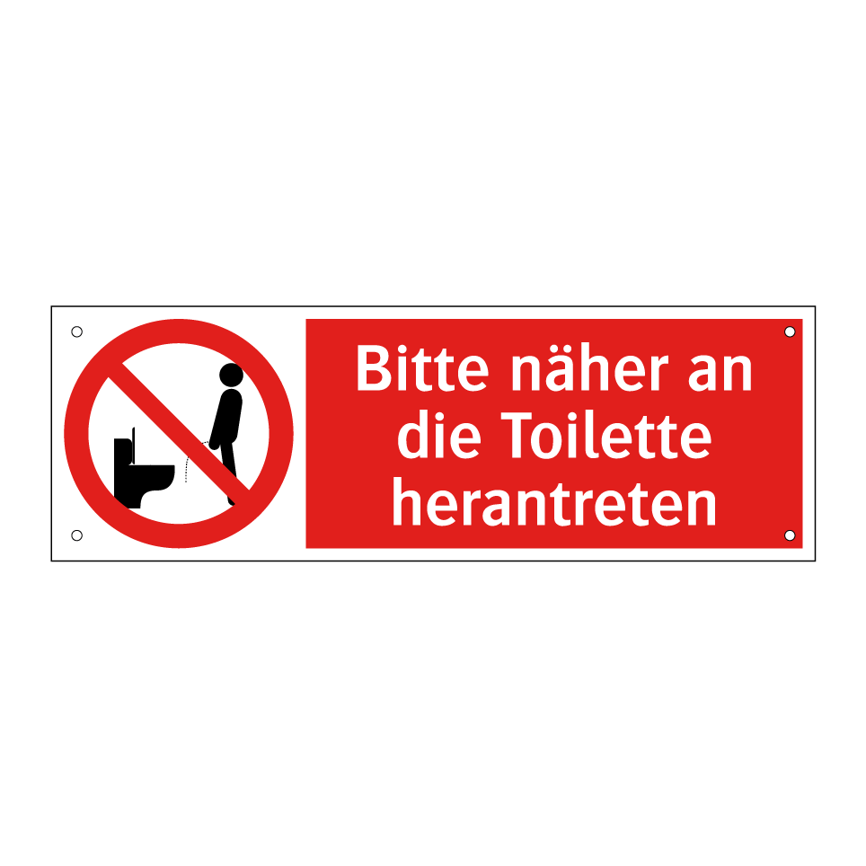 Verbotsschild mit dem Text Bitte näher an die Toilette herantreten