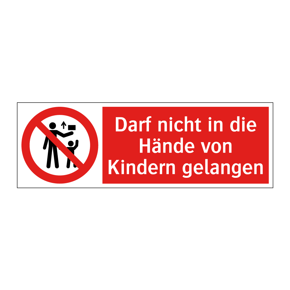 Verbotsschild mit dem Text Darf nicht in die Hände von Kindern gelangen