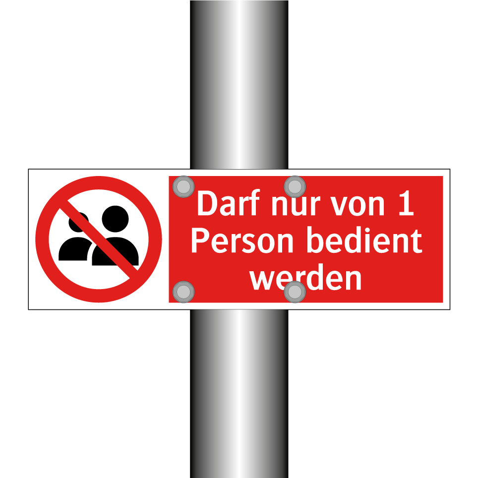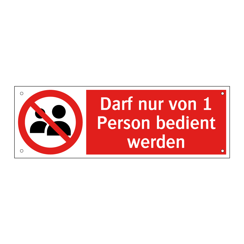 Verbotsschild mit dem Text Darf nur von 1 Person bedient werden